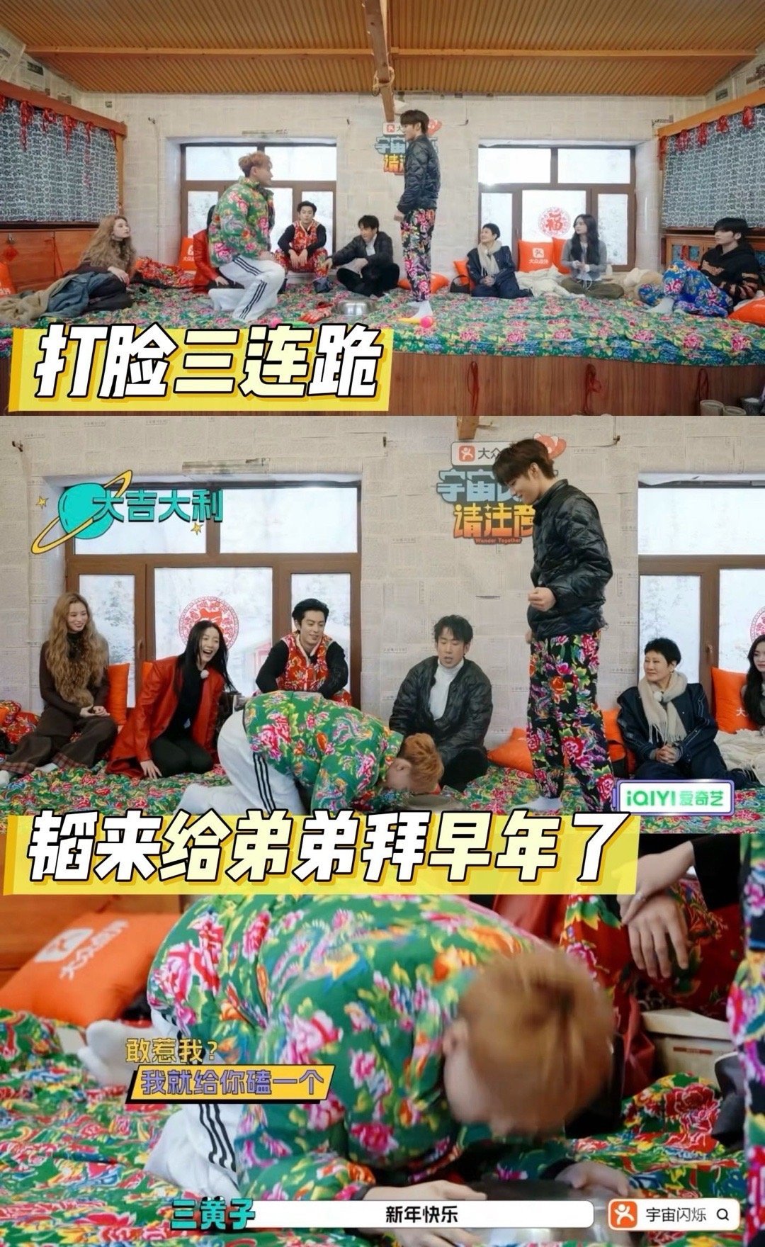 黄子韬刘耀文互相磕头 磕头还能磕出团魂?黄子韬刘耀文互相行礼,结果磕着磕着现场直接燃起来了,这拜年方式太硬核了!