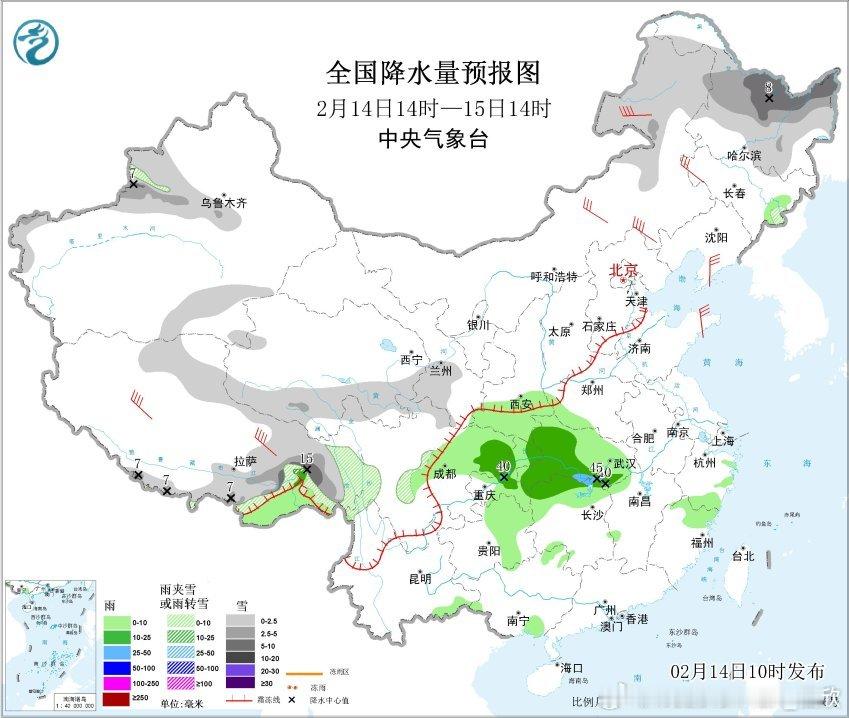 今天下午到明天下午,雨雪增多。黑龙江北部、新疆伊犁河谷、西藏东部有大雪;四川东北部、重庆、陕西南部、湖北、湖南北部、贵州东北部的降雨会增多,而且重庆贵州湖南湖北一带的降水,可能还会伴随雷电,局地甚至有短时强降雨、雷雨大风、冰雹。