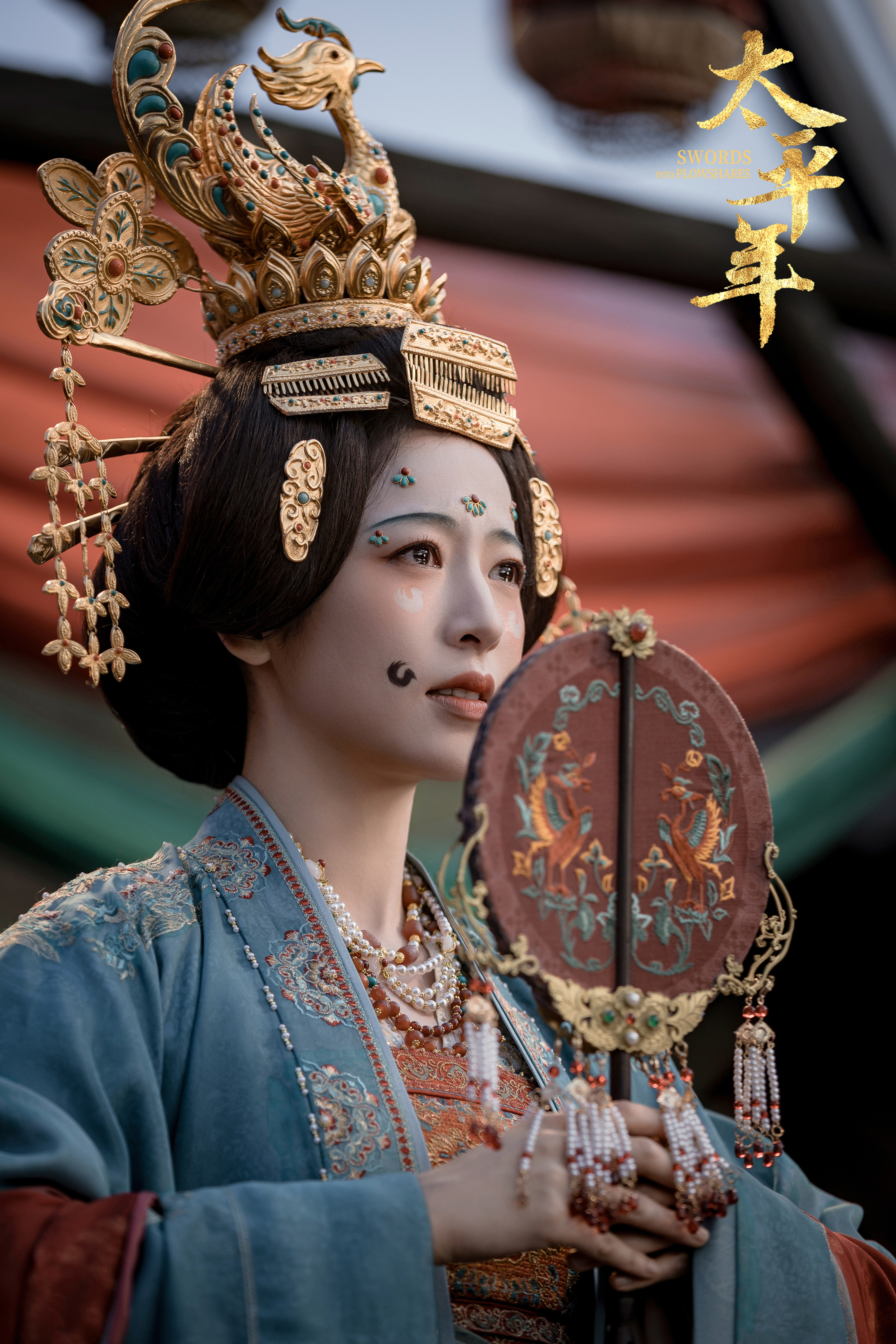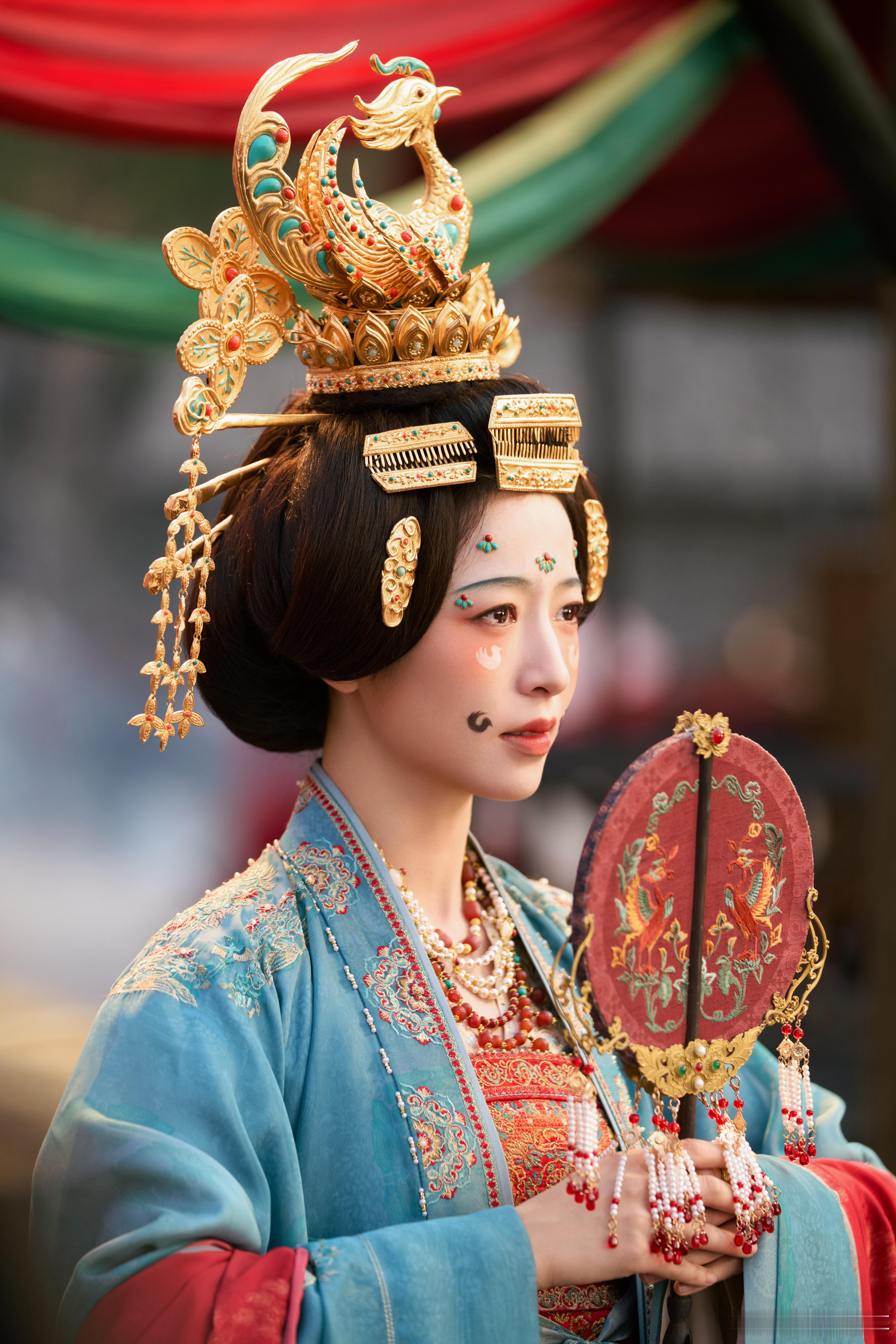☽ 剧照-蓝衣嫁衣+面靥妆-扇子遮面