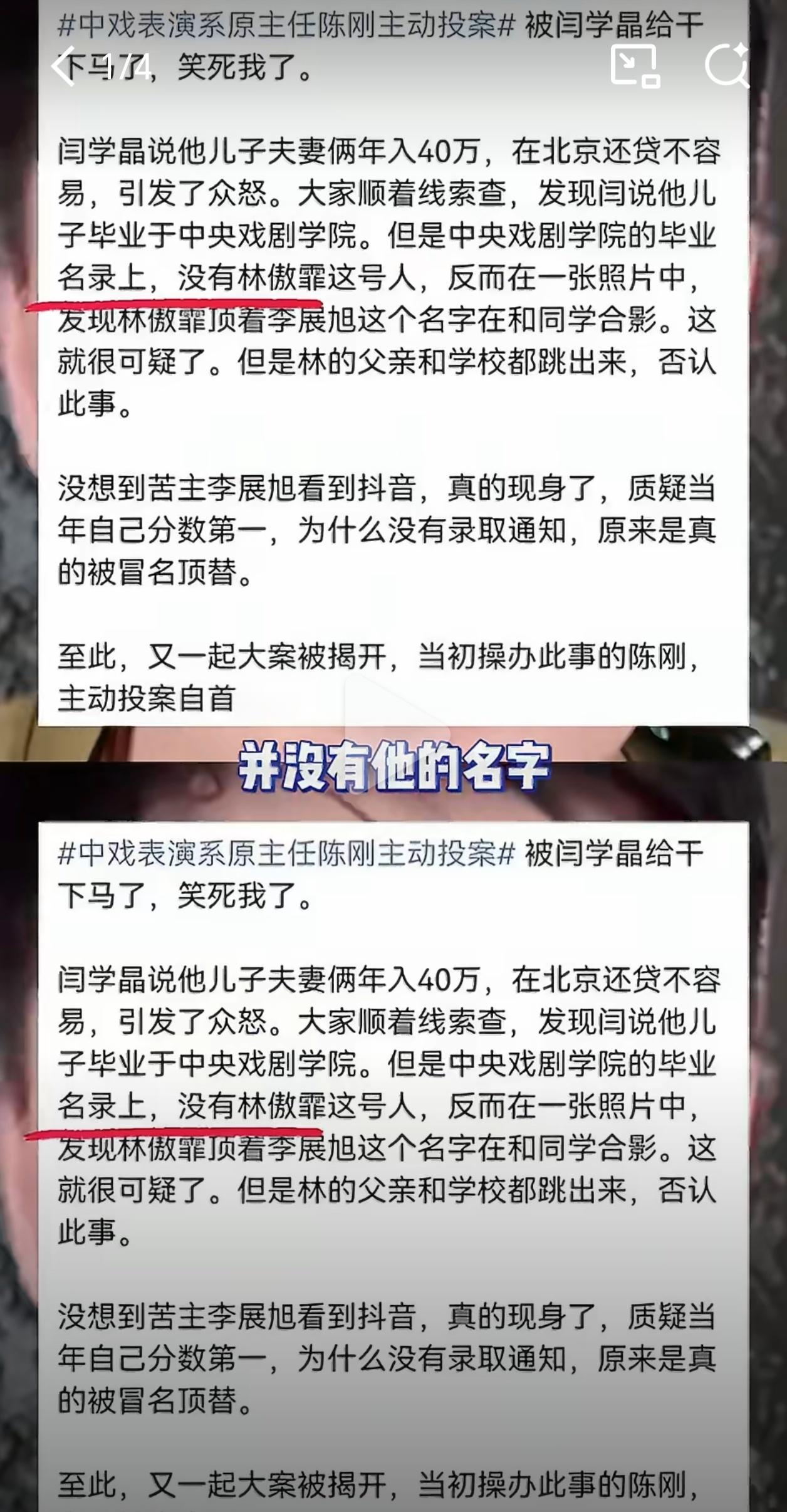 闫学晶儿子 顶替闫学晶当初直播哭穷谁能想到现在牵扯出中戏两位主任被查这剧情比电视剧还敢写
