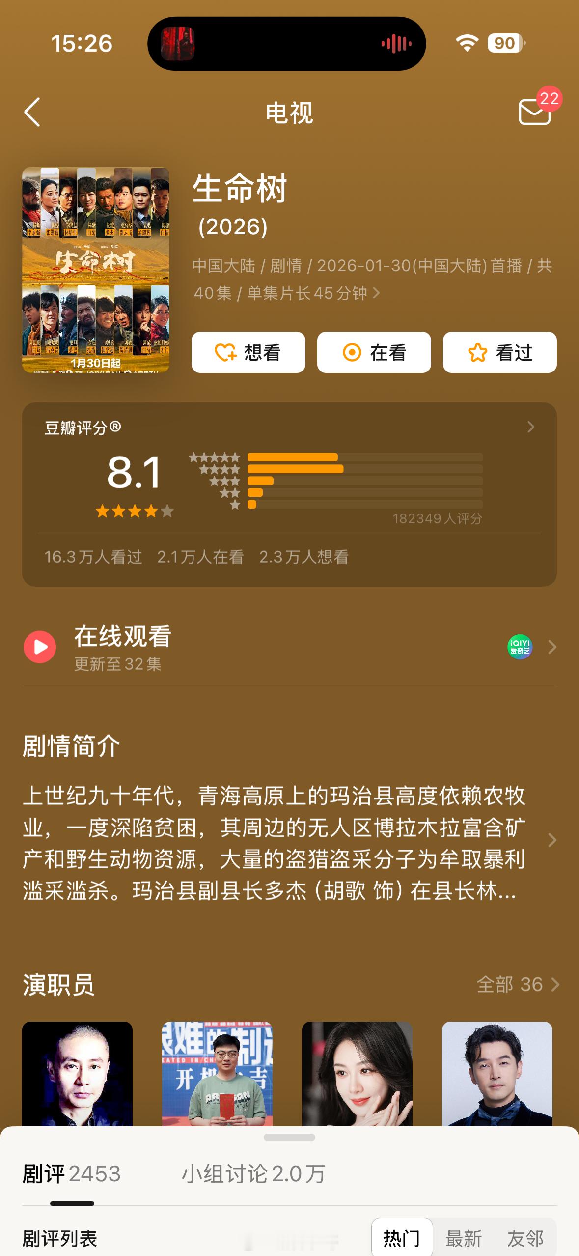 杨紫胡歌主演的生命树豆瓣开分8.1,这也是今年开分里的前三了,如果没有黑粉下场