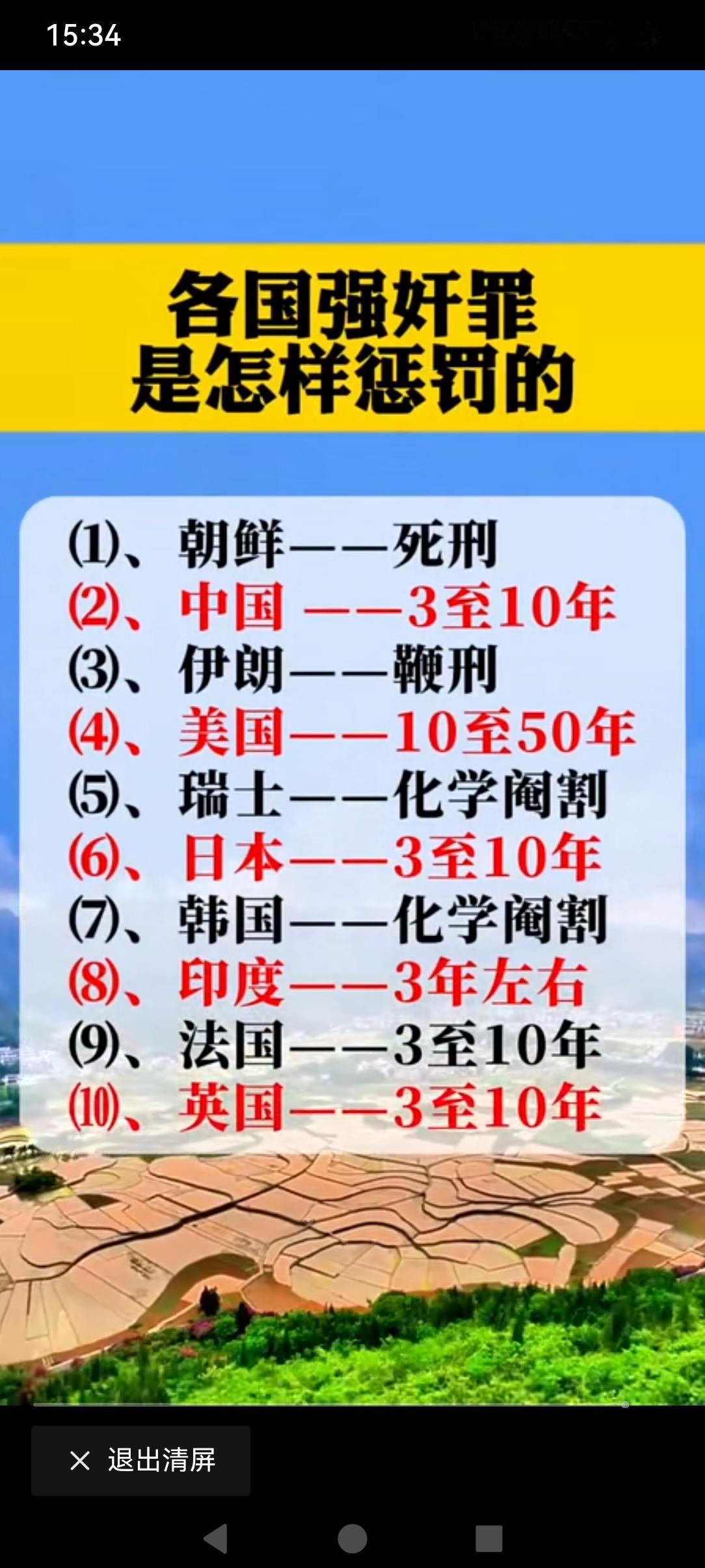 全球部分国家对强奸犯的处罚程度不一样。 还是瑞士跟韩国最管用吧!