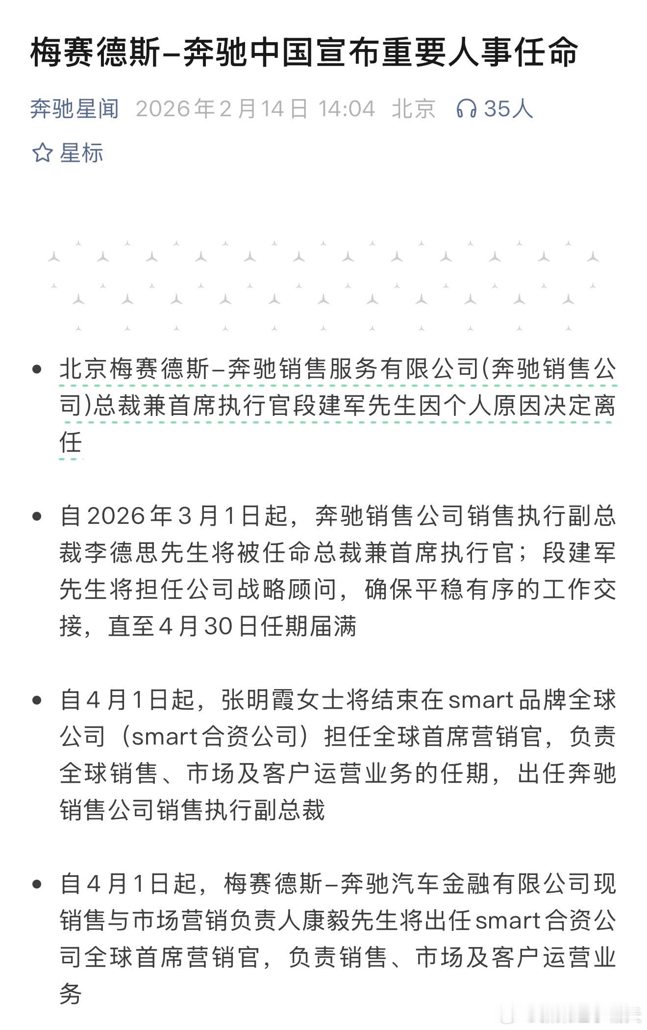 北京奔驰和 Smart 这波人员调整挺大