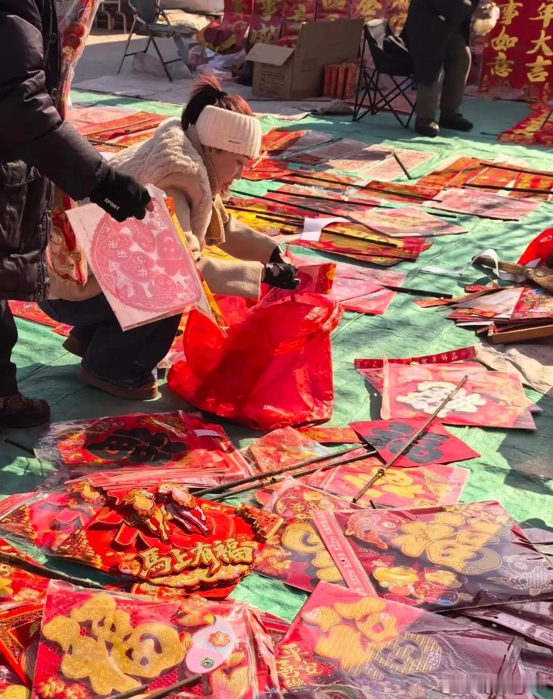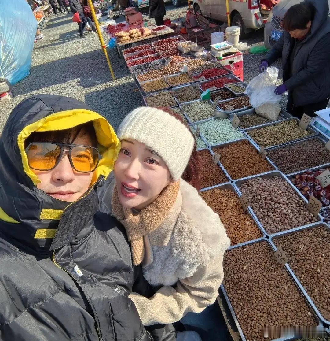 严屹宽陪老婆回辽宁过新年!杜若溪带着婆婆在东北大集上采购年货,地上铺满了福字,还有冻梨,大鹅大蚕蛹,大白菜,浓浓的烟火气息,看着就很喜庆。