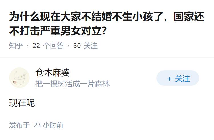 为什么现在大家不结婚不生小孩了,国家还不打击严重男女对立?