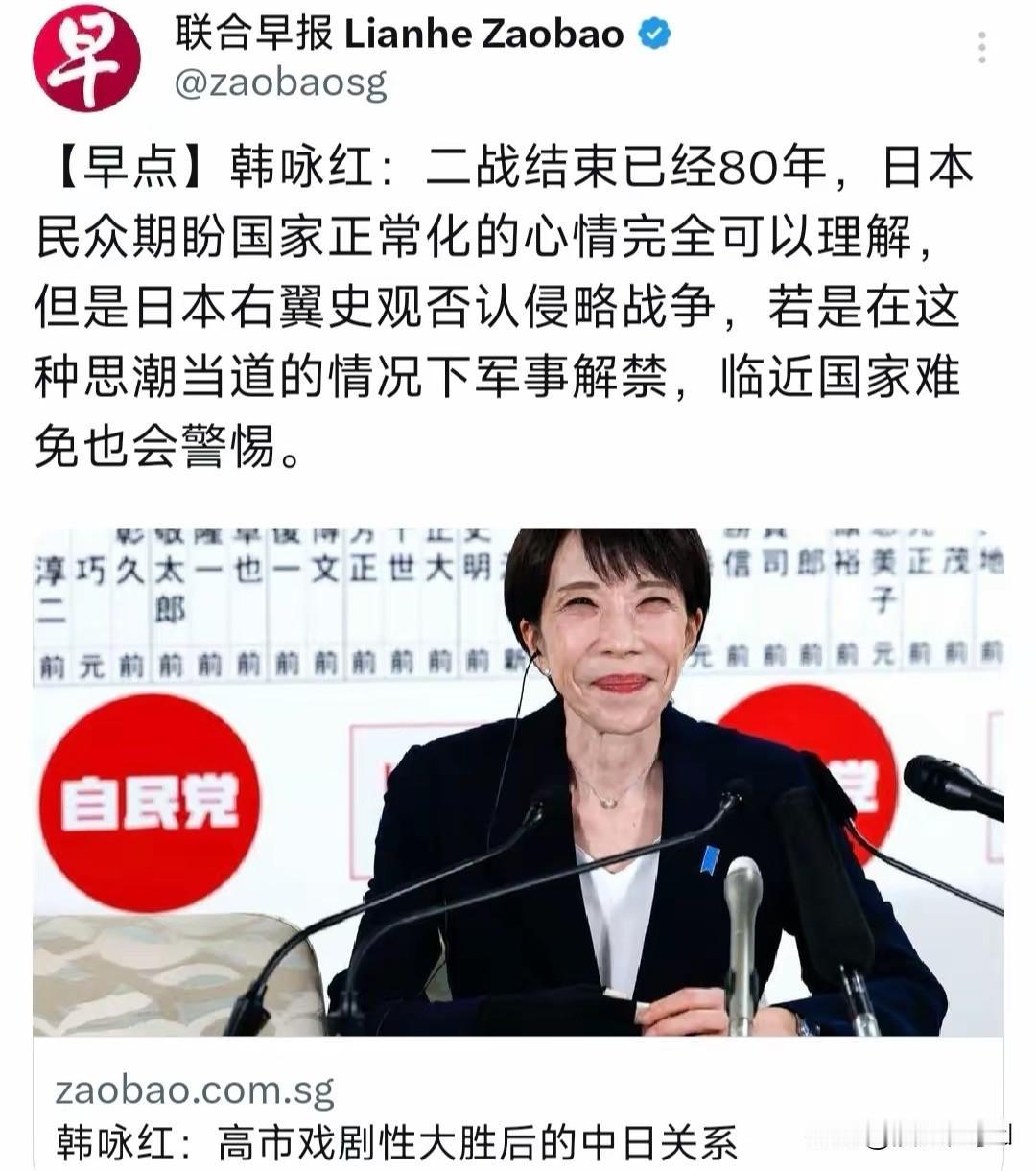 日右翼歪史谋军解引周边警惕 日右翼拒认侵略谋军解犯众怒。 2月13日晚,新加坡联合早报刊发韩咏红评论。二战落幕满八十年,日本民众期盼国家正常化的想法属人之常情。日本右翼拎不清历史是非,固守否认侵略的错误史观。右翼思潮下的军事解禁举动,如同埋在地区和平中的定时炸弹,引发周边国家全程戒备。 民间观点直指日本重小礼无大义,拘小节无大德,畏威而不怀德,强势则劫掠,弱势则卑伏。这一判断至今未过时。 右翼死磕错误史观,妄图推动军事解禁,触碰历史伤痛,搅动地区安全局势。 日本民众的正常化诉求被右翼耍小聪明绑架,以篡改历史、重走军国主义为路径,触发邻国高度警惕。 国家正常化的核心是正视历史汲取教训,而非在错误路上一条道走到黑。 大家怎么看。评论区聊聊。