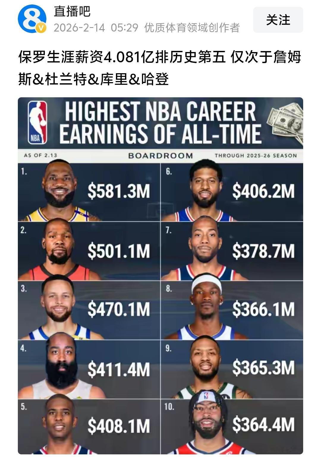 哈登、保罗、乔治、利拉德等都对不起这样的高薪,职业生涯也没什么荣誉,当然利拉德好在在雄鹿拿个杯赛冠军,但是保罗、哈登、乔治真的啥也没有!