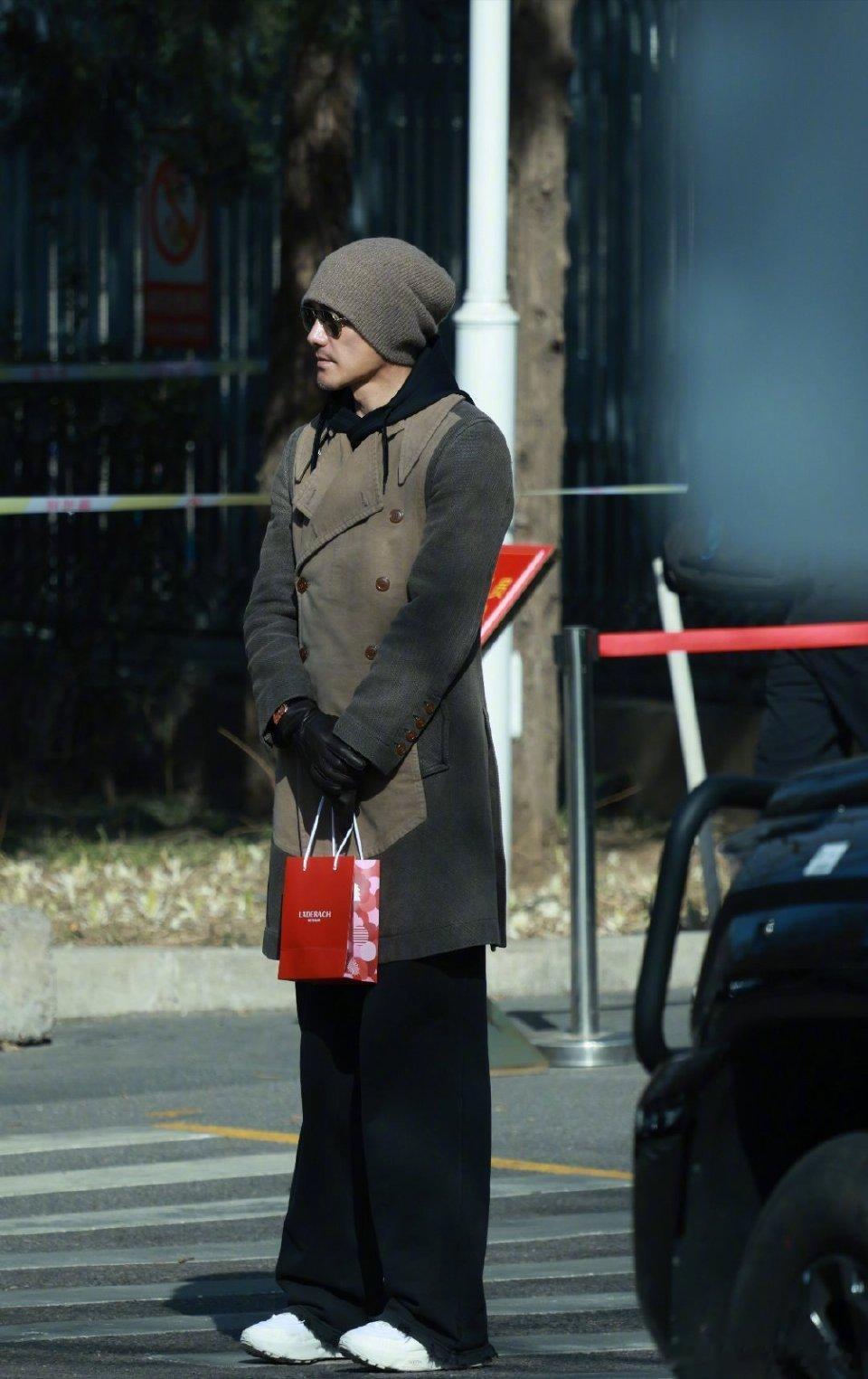 胡兵把秀场搬到央视门口 胡兵的穿搭永远不会让人失望!深灰色大衣搭配卡其色马甲,叠穿黑色连帽衫,这层次感,简直是时尚教科书级别。