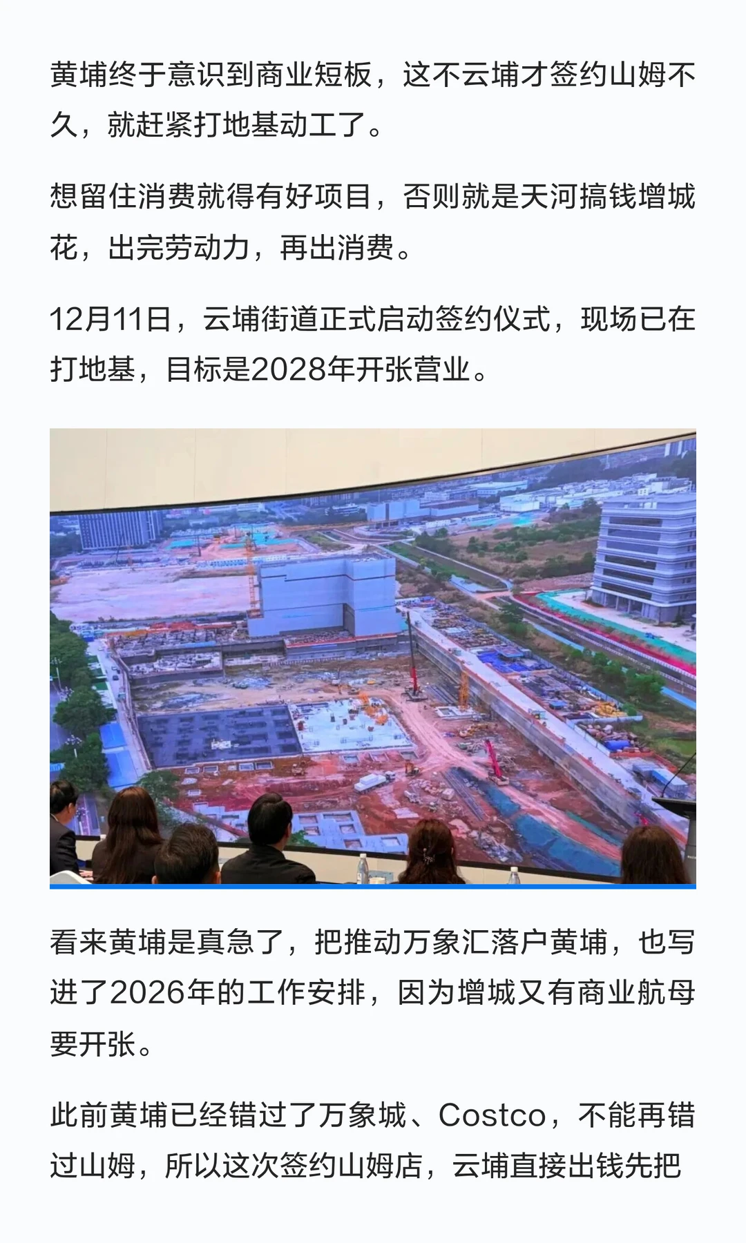 黄埔山姆店正式动工,终于知道要补商业短板