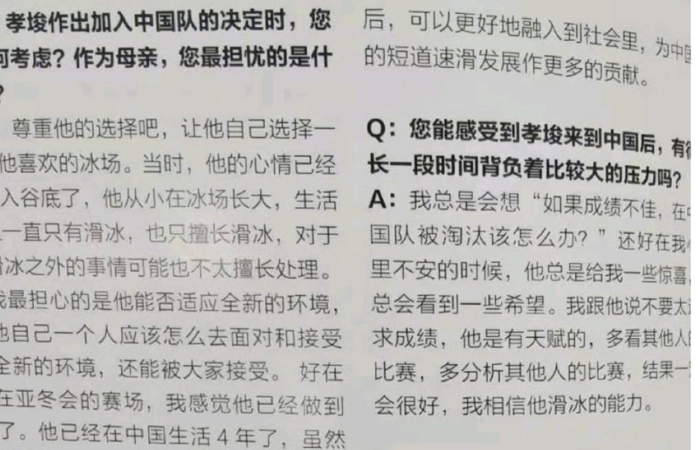 母爱护航!林孝埈妈妈回应儿子加入中国队:尊重选择,盼他为中国短道速滑贡献更多妈妈回应林孝埈加入中国队 林孝埈妈妈在采访中回应了儿子加入中国队的决定,她表示,作为母亲,始终尊重林孝埈的选择,让他自己选择一块喜欢的冰场。谈及当时的心情,林孝埈妈妈坦言,做出决定时儿子的心情已经跌入谷底。他从小在冰场长大,生活里一直只有滑冰,也只擅长滑冰,对于滑冰之外的事情可能不太擅长处理。因此,她最担心的是林孝埈能否适应全新的环境,一个人如何面对和接受新的生活,以及能否被大家接受。好在亚冬会的赛场上,林孝埈用出色的表现回应了这份担忧。如今他已经在中国生活4年,虽然还有很多不足,但妈妈希望他未来离开赛场后,能更好地融入社会,为中国的短道速滑发展作更多贡献。此外,林孝埈妈妈还提到,曾担心儿子在中国队背负太大压力,总会想“如果成绩不佳,在中国队被淘汰该怎么办?”但每当自己不安时,林孝埈总会带来惊喜,让她看到希望。她也一直鼓励儿子不要太苛求成绩,相信他的天赋与滑冰能力。