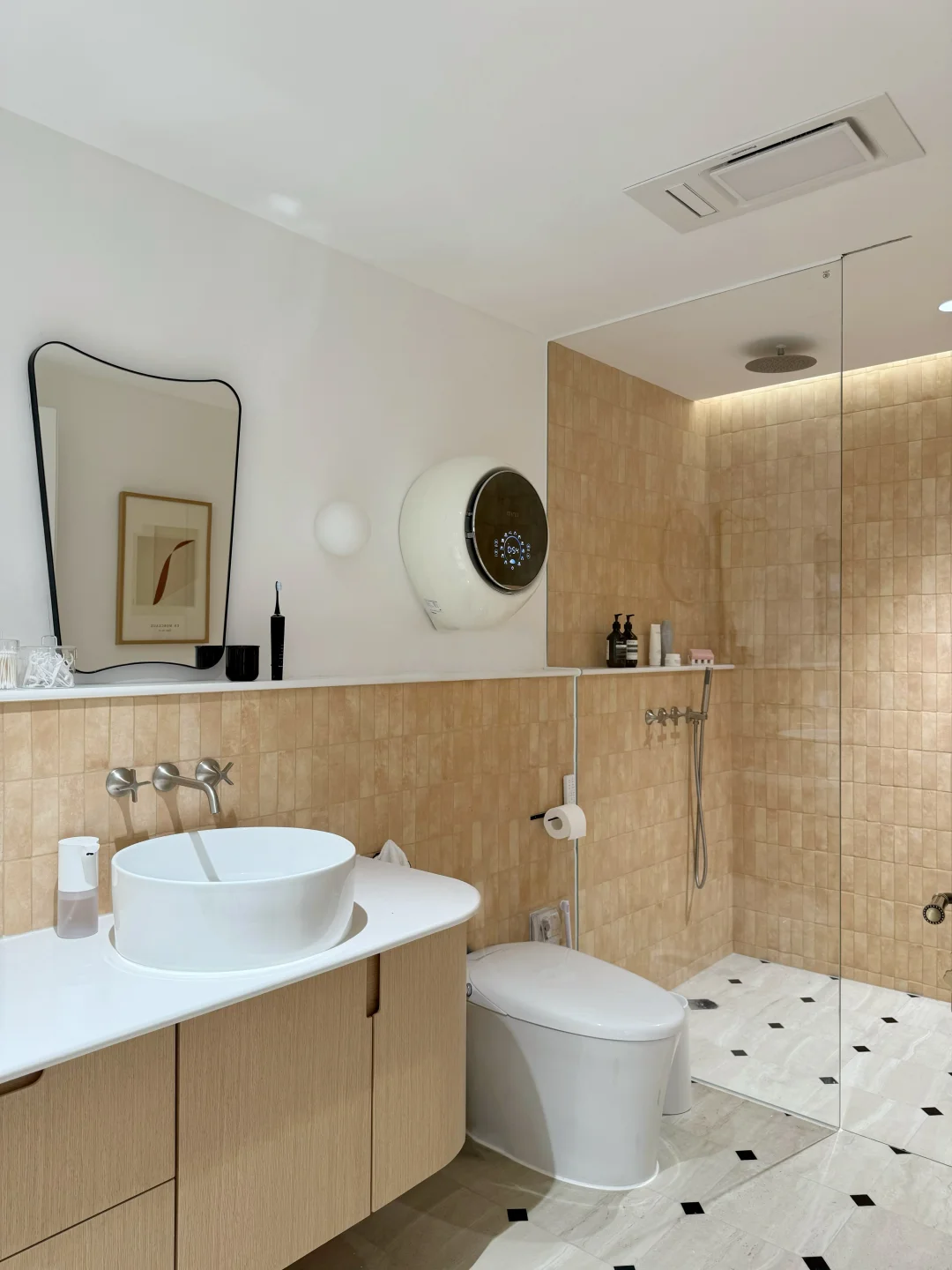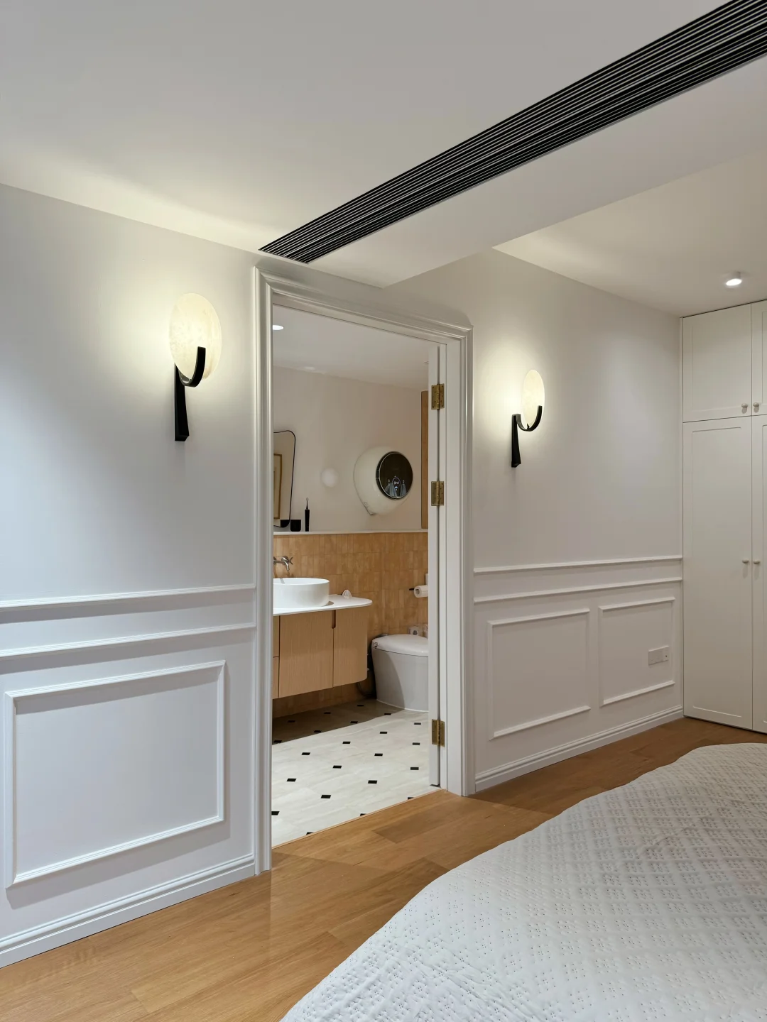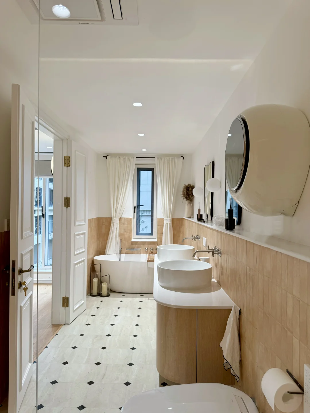 婚后买给自己的200平跃层,没请设计师,装修全程都亲力亲为,二楼主卧因为是业主搭建 平面布局花了超多心思,历时一年 终于实现了我的梦中情卧🎉 🌵主卧是书房➕卧室➕卫生间组成的套间,长7.5m,宽5.9m 🌵床头砌3m长的背景墙作隔断,书房和卧室做了开放式设计,空间通透又显大 🌵主卫留了1.75m宽,既有洗漱不打架的双台盆,又有独立的大浴缸和淋浴区,还有解放双手的壁挂洗衣机 整体动线: 在书房工作完——从衣柜里拿上换洗衣物——然后就可以去卫生间洗掉满身疲惫🛁——洗完换下来的衣服随手扔进壁挂洗衣机里——省下来的时间敷敷面膜、擦擦身体乳——最后护肤完躺进松软的被窝里,这一圈下来真的超治愈! 之前做了很多功课,才入手这台小吉小水滴 安装完真的被惊艳到了,我是装修时提前规划好水电,把管线全都藏了起来,现在整面墙清清爽爽,效果简直太完美了✨ 机身小小的,装在马桶上方一点不占地,看起来一点也不压抑 特别喜欢它这水滴造型,再加上温柔的奶白色,和我家的法式风格特别搭,简约又显高级 而且壁挂安装,用的时候不用来回弯腰,对我这种腰椎间盘突出患者来说简直就是救星 现在每次用都觉得:当初做足功课、提前预埋的决定,真的太机智啦💡 当然最戳我的还是它的清洁力。 以前总怕这种小洗衣机洗不干净,没想到用完一整个真香现场 40种定制洗烘方案,纯棉、真丝啥的都能洗,而且还有专门的bra程序包,不用担心内衣会洗坏 尤其是宝宝吃饭的果汁渍、短裤上的尿便渍,就打开婴童特渍洗涤程序,洗的比我手洗还干净,这回不光解放双手还解放了我的老腰 当妈的都知道孩子皮肤娇嫩,所以选小吉这种母婴级除菌认证的洗衣机,真的不会错! 还有就是1.1kg容量,像平时的内衣、睡裙、瑜伽服直接交给它,再也不用动不动就开大洗衣机,省水、省电又省心~ 重点是运行起来没啥声音,就算卫生间和卧室只有一墙之隔,也完全不会打扰家人休息😴 而且24h托管除菌又祛味,睡前把脏衣服扔进去,不用熬夜等着它洗完,第二天拿出来照样干爽无异味 今天就分享到这啦,主卧平面图放在最后,还有想问的评论区留言呀📝