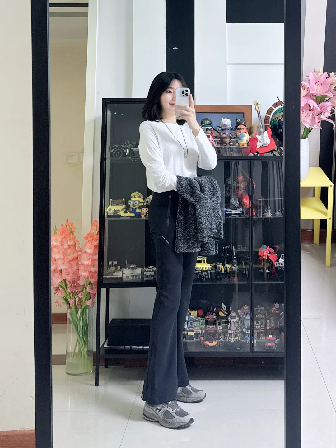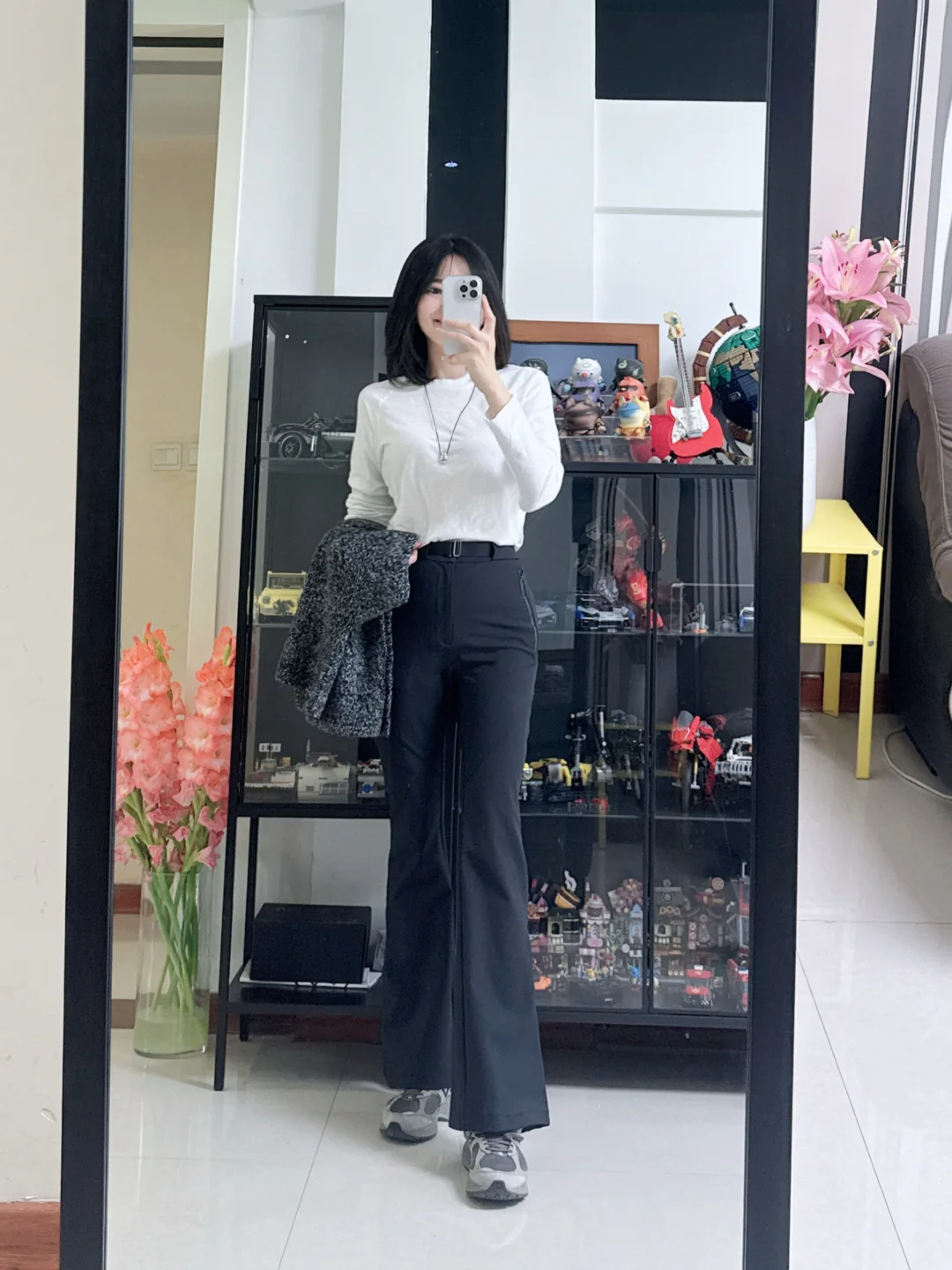穿搭推荐:魔力薇薇的弹力微喇裤超级好穿,搭配各类上衣都合适,版型拉长腿部线条。
