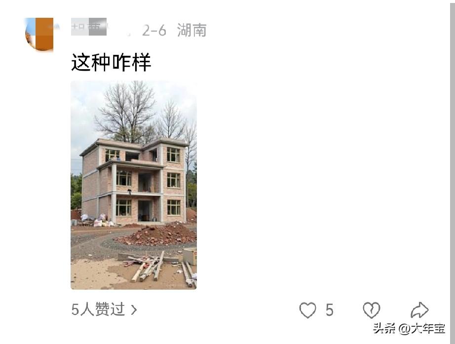 这位湖南的朋友好幸福啊,这简直就是我的梦中情房[送自己一朵花][送自己一朵花][送自己一朵花] 最近因为楼房里的各种问题,我实在是受够了,就想去哪里整个地方建个房子, 我家没地方了,都拆完了。 公婆家村里的,可以翻盖,可是离我们这太远了, 所以我现在就在看老式步梯房,一楼二楼都可以,最好一楼带院子的, 先让我父母养老,后面我老了再去[捂脸][捂脸][捂脸] 高层真的够够的[流泪][流泪][流泪][流泪]