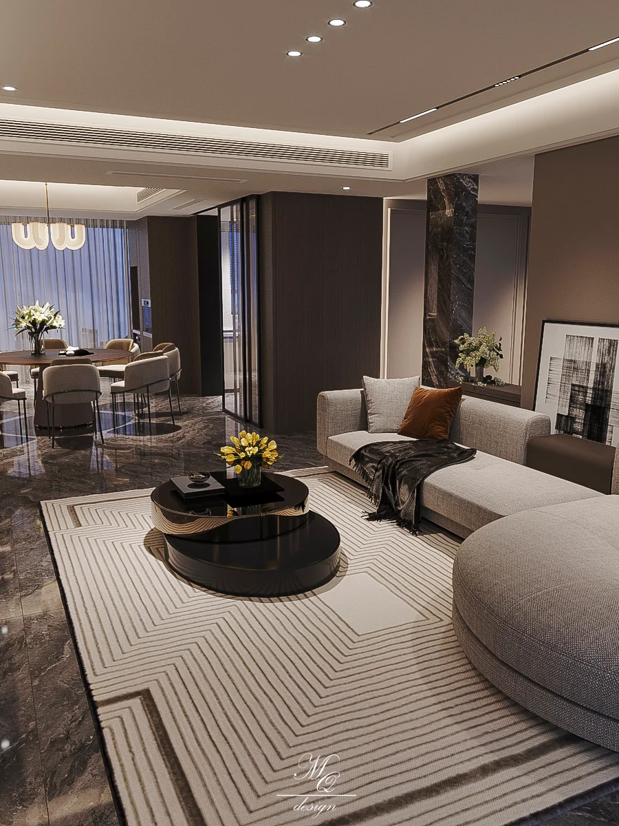 轻奢风大平层设计 暖卡色系的高级感