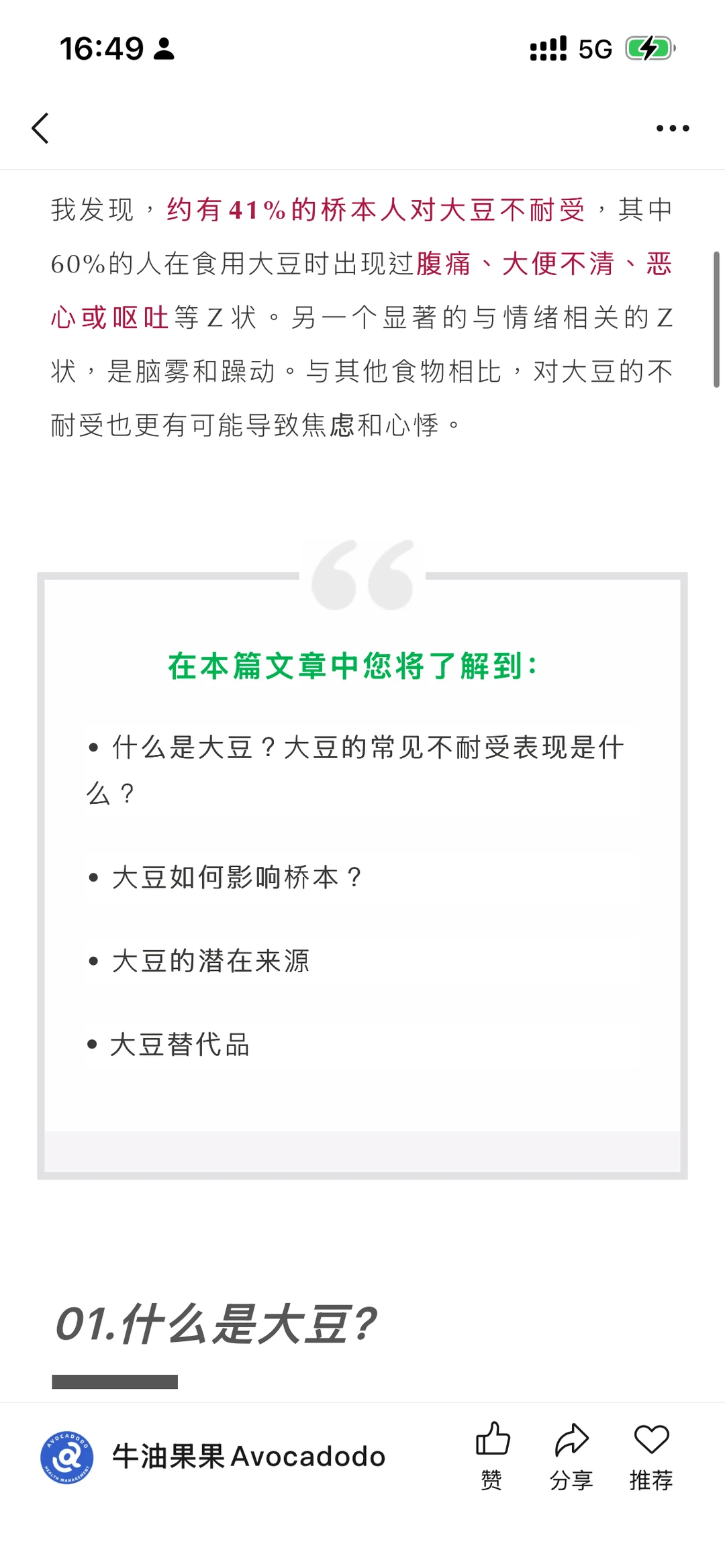 研究显示,约41%的桥本人对大豆不耐受,60%吃后会出现腹痛、恶心、稀便等问题,还会伴随脑雾、焦虑甚至心悸。