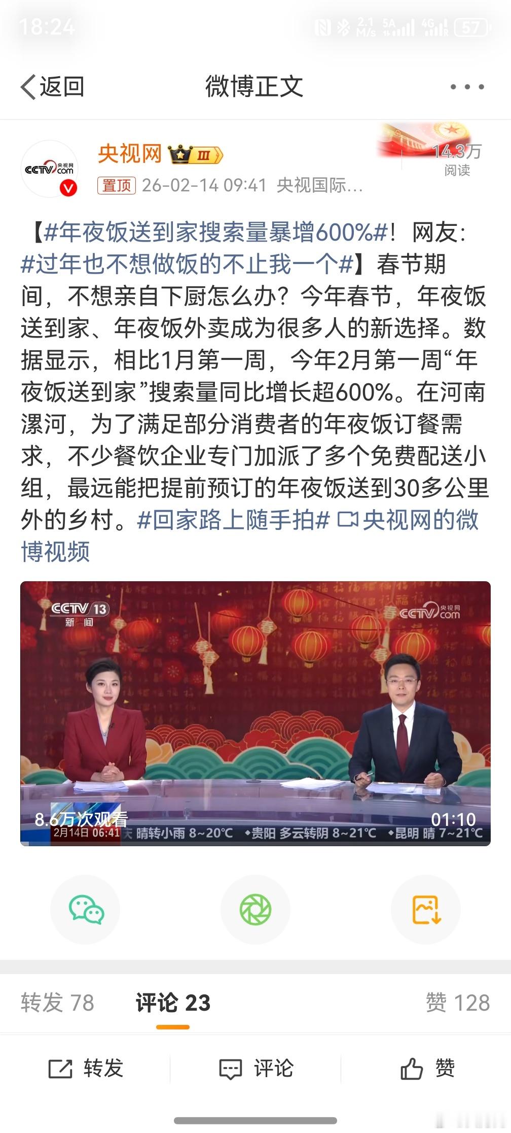 年夜饭送到家搜索量暴增600% ,现在很多饭店过年都不关门的,直接去饭店吃多好的,或者提前去饭店订好餐,打包回家,晚上稍微热一下就好。微波炉大法好呀