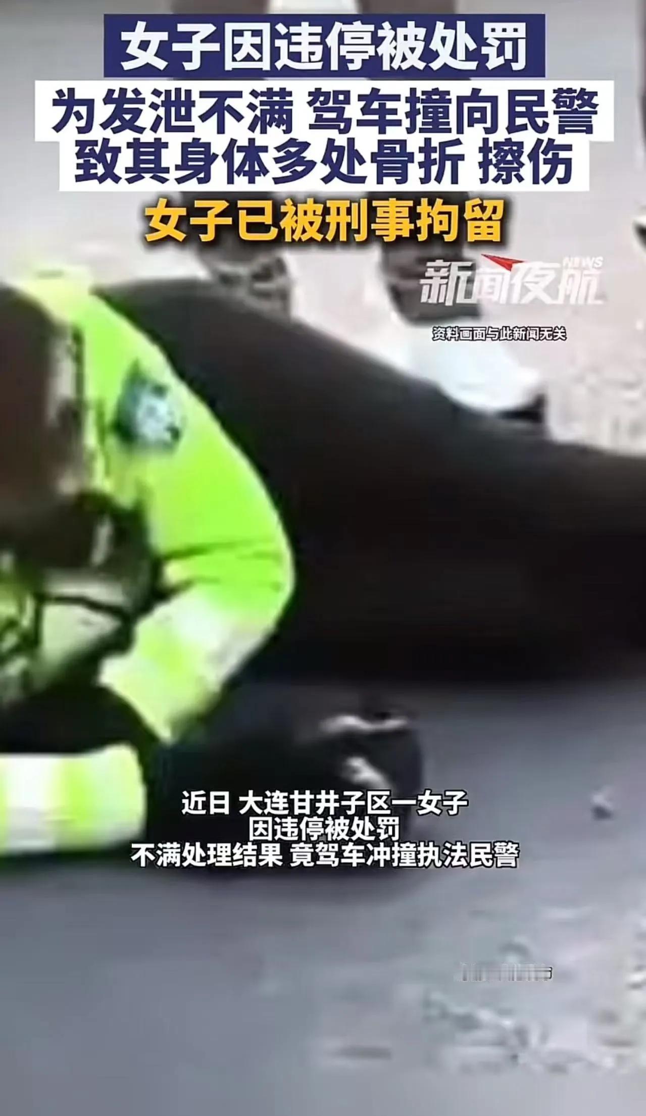 “在家横惯了,这下老实了!”大连,女子因违停被处罚,为发泄不满,居然驾车撞向民警,致其身体对出骨折擦伤!警方:已经刑事拘留!网友:本来一两百块钱能解决的事,现在好了,喜提包吃包住! 你永远想不到,一个人能为一张小小的罚单,把自己送进牢房。 大连一女子,就做了这样一件蠢事。 只是违停被贴条,她偏要把小事闹成天大的祸。 车停在不该停的地方,罚单贴上来,本是再正常不过的执法。 她偏不,心里那股蛮横劲儿上来,谁也拦不住。 看见不远处执勤的民警,她心头火起,竟一脚油门冲了过去。 车子撞在人身上,闷响一声,人直接飞了出去。 民警倒地不起,浑身是伤,多处骨折,万幸捡回一条命。 路人都看呆了,这哪里是赌气,分明是拿命行凶。 民警是在执行公务,她却把执法当成针对自己的刁难。 平日里在家蛮横惯了,以为走到哪里,世界都要顺着她。 出了门,才知道规矩不是家里的纵容,法律更不是摆设。 她很快被当场控制,证据确凿,无从抵赖。 一张两百元的罚单,最后变成了刑事拘留。 袭警、妨害公务,哪一条都不是小事。 等待她的,不再是交钱认罚,而是实打实的牢狱之灾。 网友说得直白:两百块能解决的事,非要赌上自由。 在家横可以,出了社会,没人会惯着你的脾气。 总有人觉得规则是给别人定的,自己可以例外。 总有人把任性当个性,把蛮横当本事。 可法律从不管你在家是什么样子。 它只认对错,只守底线。 你敢伸手碰法律的红线,它就敢让你付出代价。 这世上最不值的,就是用自由换一时的赌气。 惯出来的脾气,终究要在社会上,挨最狠的一巴掌。