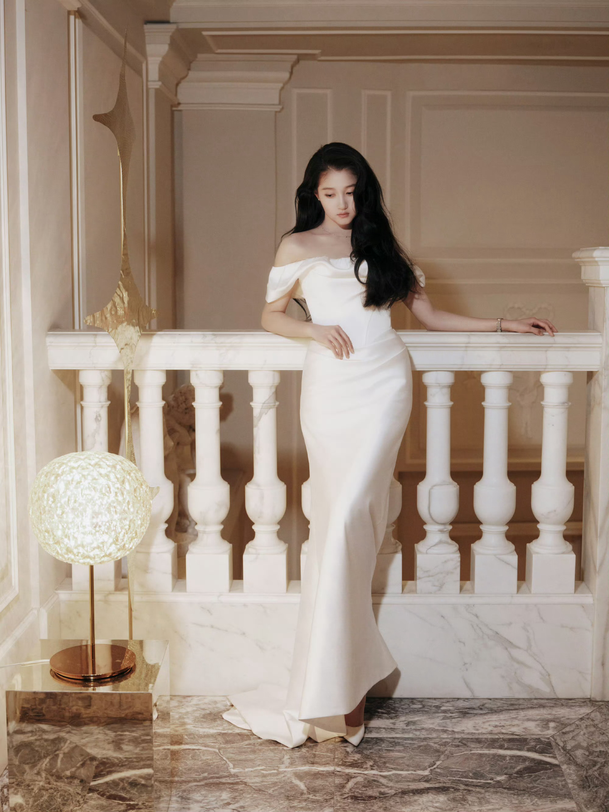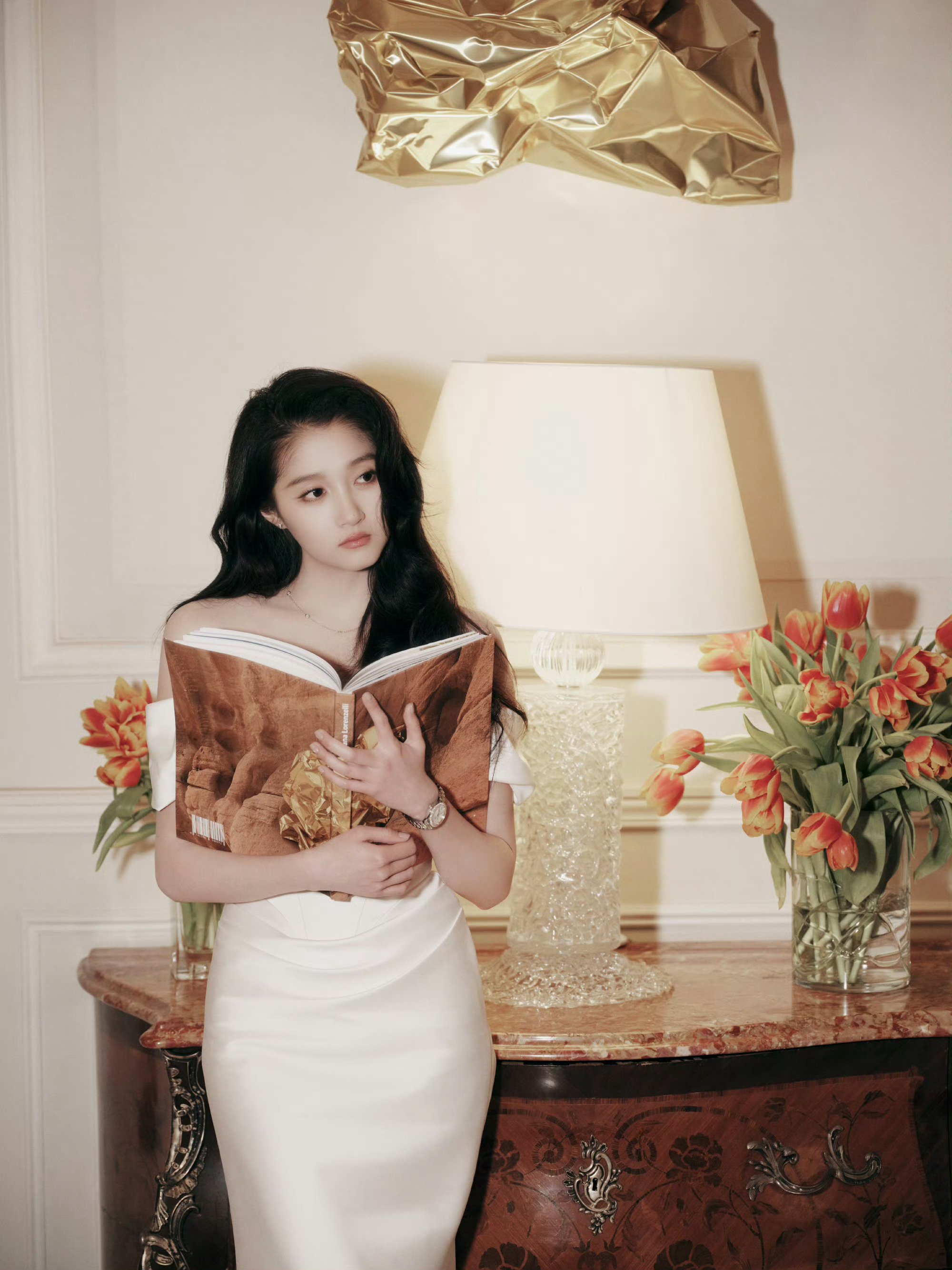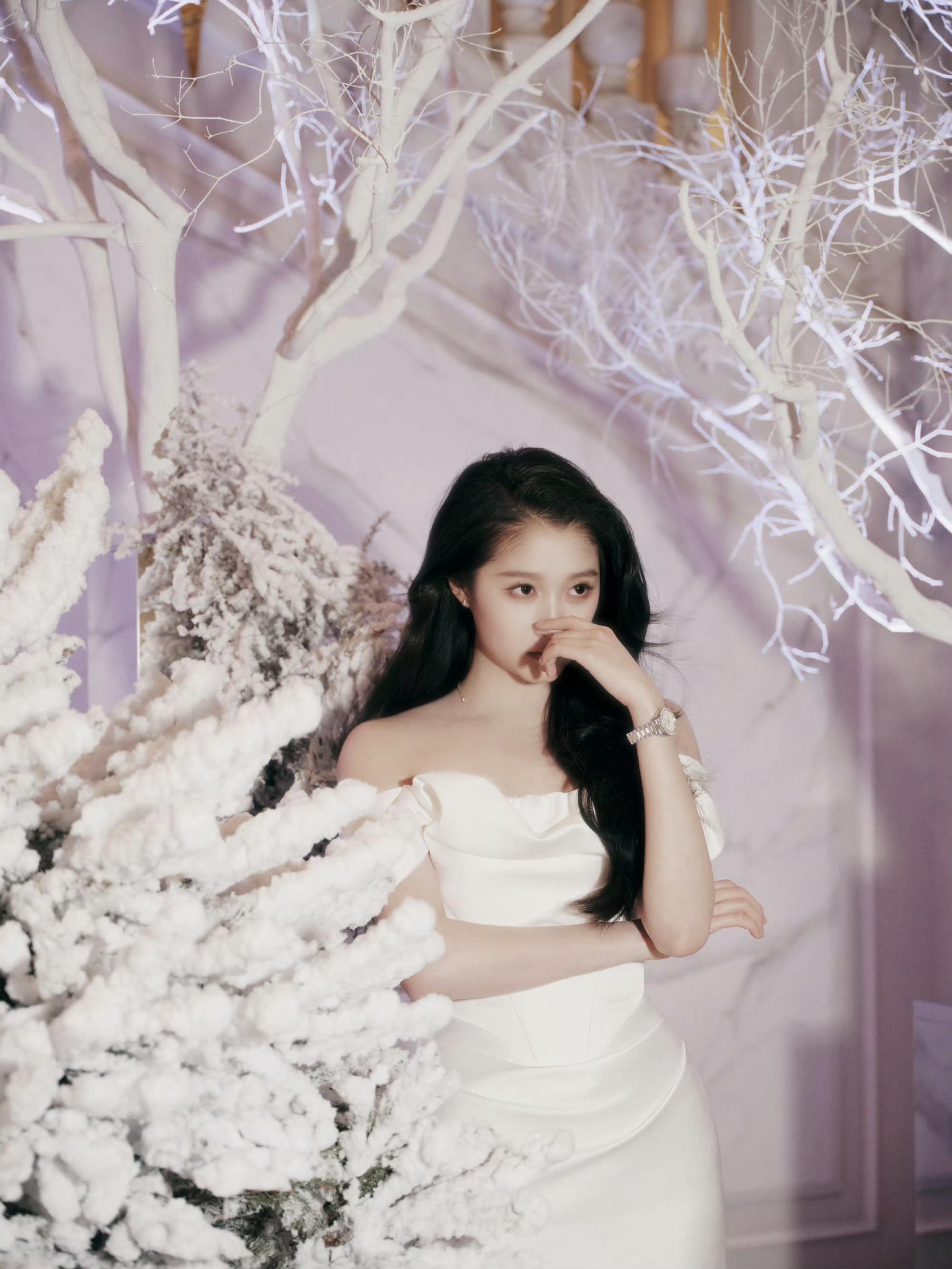 关晓彤洁白的婚纱手捧着鲜花~今天我要嫁给你啦