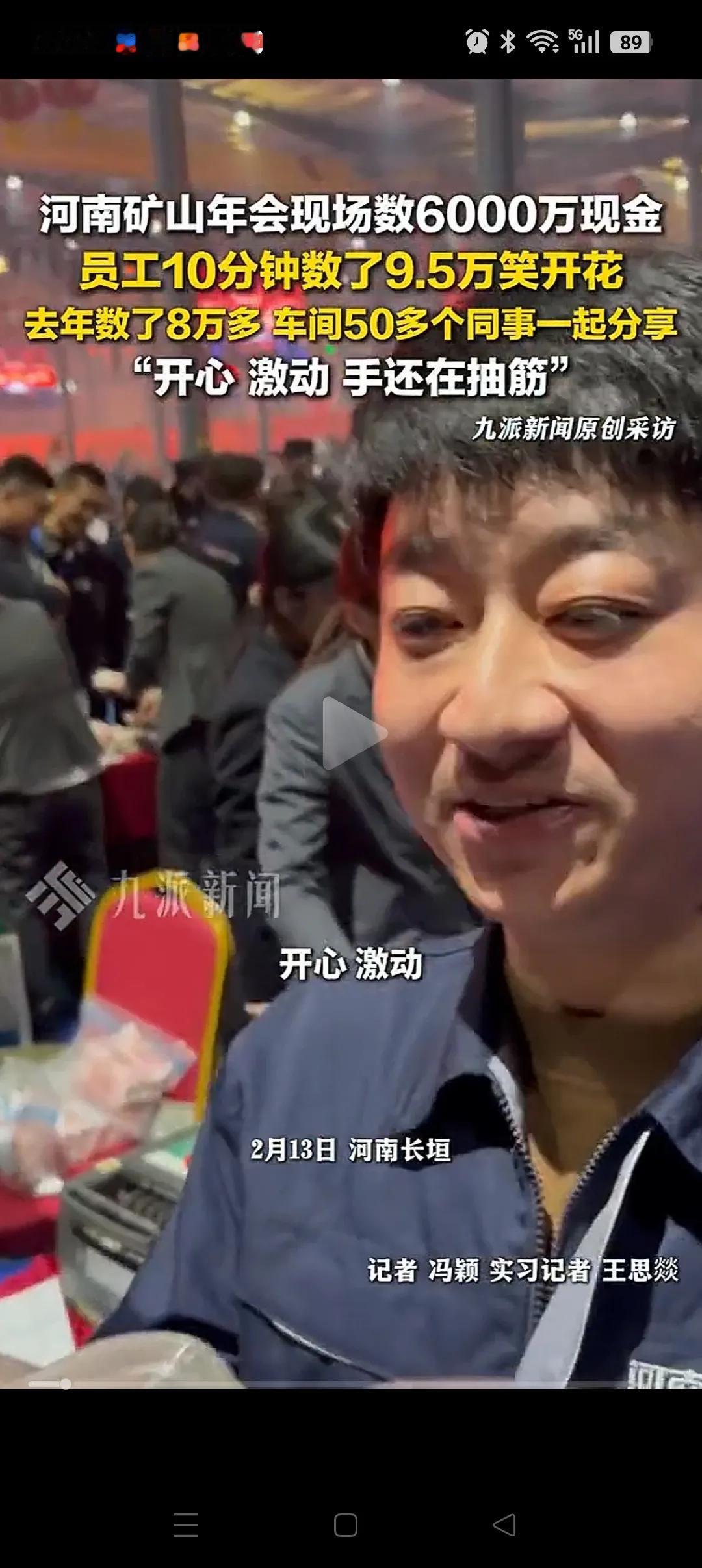 河南矿山发钱,原本以为是每个人都可以上场数钱,数到的都归自己。没想到是每个组派个代表上去,数的钱再拿回去平分。以赵女士为例:她数了6.7万,班组有50人,平均也就是1000多块钱。 这么一听大家可能觉得有点少,但事实并不是这样。首先大家的礼品早就已经发了,每个人10件。其次,数现金只有6000万。这次的年终奖是1.8亿,还有1.2亿早就发给他们了。 很多人光看现场平分的一千多块,就急着说金额不多,其实是只看到了最表面的热闹,完全没算清这笔账。现场堆成山的6000万现金,本就是用来活跃气氛、让大家图个开心的仪式感,真正的大头早就安安稳稳打到了每一位员工的账户里。 1.8亿的年终奖总额,放在任何一家企业都是天文数字,崔培军没有玩半点虚的,不画饼、不拖欠,把大部分奖金提前发放到位,只留出现金环节让员工感受实实在在的喜悦。 每人十件的福利礼品提前配齐,米面油、生活用品一应俱全,过年的刚需全部安排得妥妥当当,根本不用员工自己费心准备。 不少企业过年能发点年货就算不错,年终奖一拖再拖都是常态,能像河南矿山这样真金白银拿出近两亿分给员工,还把福利做足做满的老板,少之又少。 大家羡慕的从来不是现场数钱的仪式,而是这家企业对员工实打实的诚意,是老板不抠门、不算计,真心实意和员工共享发展成果的格局。 仪式感有价,诚意无价,这样的企业谁不愿意踏实跟着干? 你羡慕这样的年终奖和福利吗?