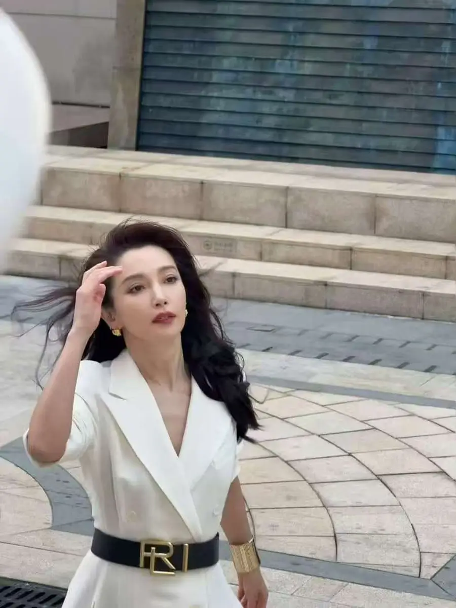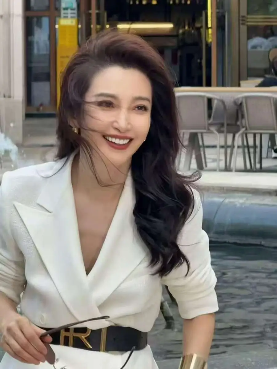 李冰冰穿白西装裙配慵懒卷发温婉大气 一颦一笑自带岁月优雅