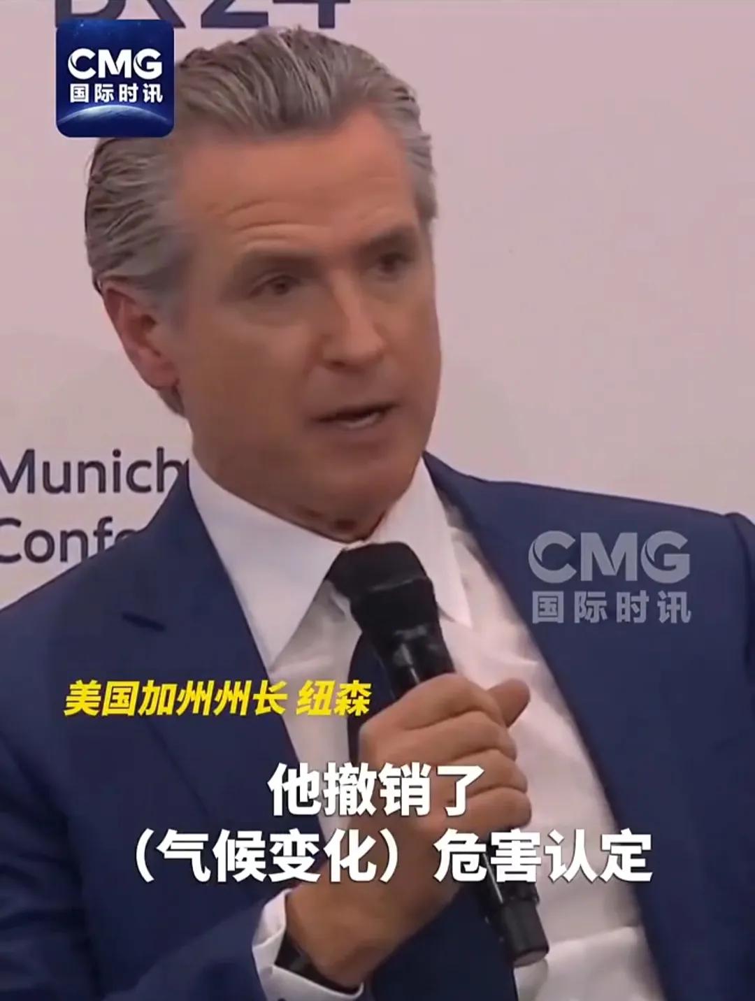 美国加州州长加文·纽森加州州长纽森今天在慕尼黑安全会议上说对美国总统老特进行了犀利的批评:“在美国历史上,从未有过比现任白宫主人更具破坏性的总统。” 纽森痛斥老特在应对气候变化方面是瞎搞,把美国的影响力搞得岌岌可危。因为老特认定全球气候变暖是谎言,更是阻挠燃油车发展,让燃油车背锅。既然没有气候变暖,那就该烧油就烧油,使劲排放尾气。老特的恣意妄为让美国在应对全球气候变化方面快速失去领导力,纽森对此痛心疾首、忧虑万分。 纽森还批老特正在背叛美国的汽车制造商,让中国主导电动汽车和清洁能源的未来。 在批完老特之后,纽森又说:“加州将继续大力推进零排放汽车、清洁能源技术。我想明确一点:唐纳德·特朗普的政府是暂时的,但加州的承诺是长期的。他将在三年后离任,我们应对气候变化的决心坚定不移,我们将继续成为这场斗争中稳定可靠的伙伴。” 纽森是民主党新生代领军人物,他将代表民主党参加2028年美国总统大选。所以,纽森的这番话,是在国际舞台上公开、直接否定特朗普政府的合法性与领导力,向全球宣告特朗普政府现在的路线并不代表美国的路线,特朗普不值得信任,大家不要太在意他,更不要害怕他。且忍一忍,再有三年老特就要从白宫卷铺盖走人了。三年后,美国将重新恢复往日的路线,继续发展新能源,继续和国际社会一起应对全球气候变化。 不仅如此,纽森的这番话也标志着美国两党的争斗已经无法调和。你支持的,我一定反对。美国政坛、社会的撕裂将越发严重。#美加州州长纽森#