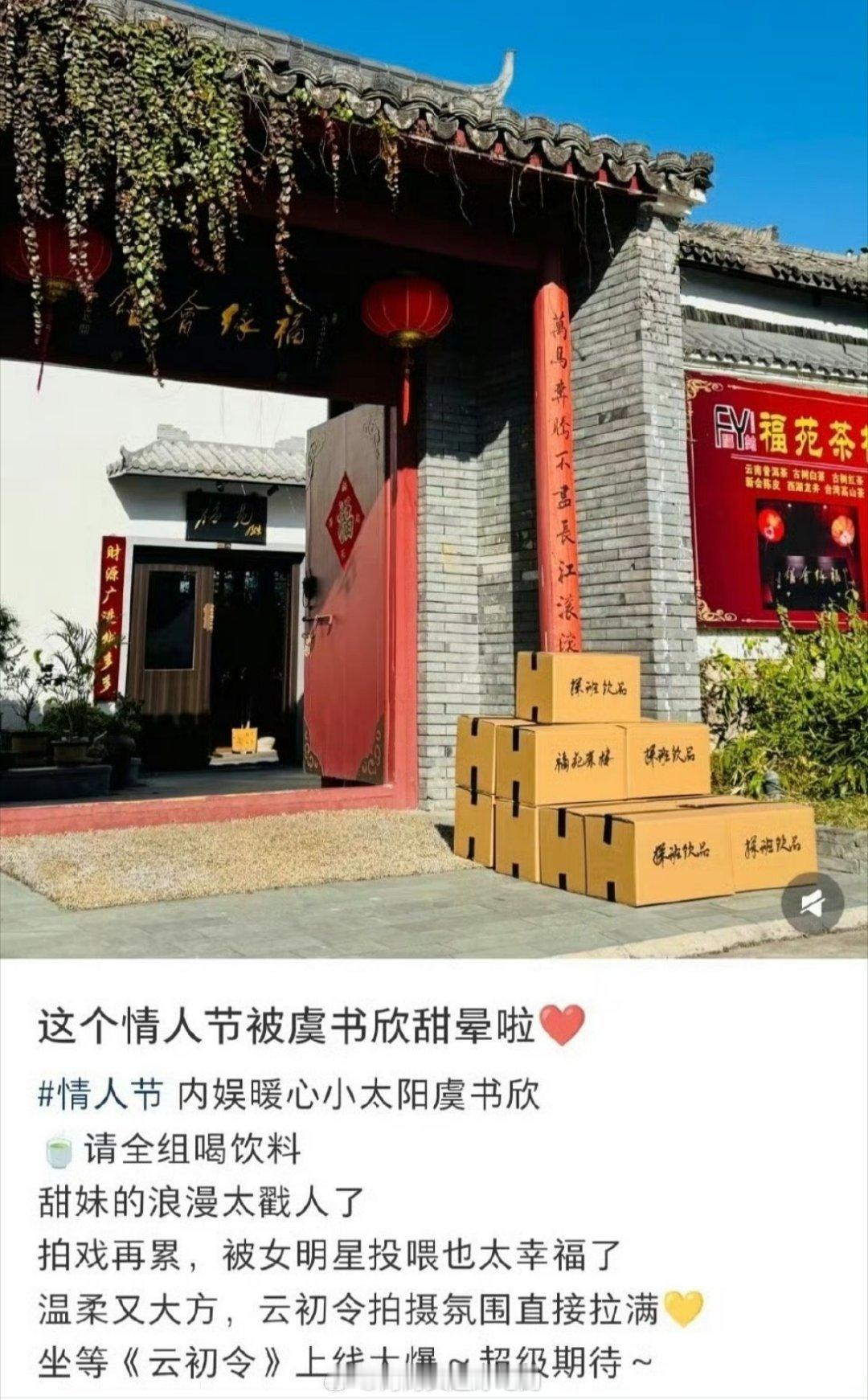 虞书欣又请《云初令》剧组喝饮料啦,美萌又大方的舒心,从粉丝到工作人员同事她都照顾