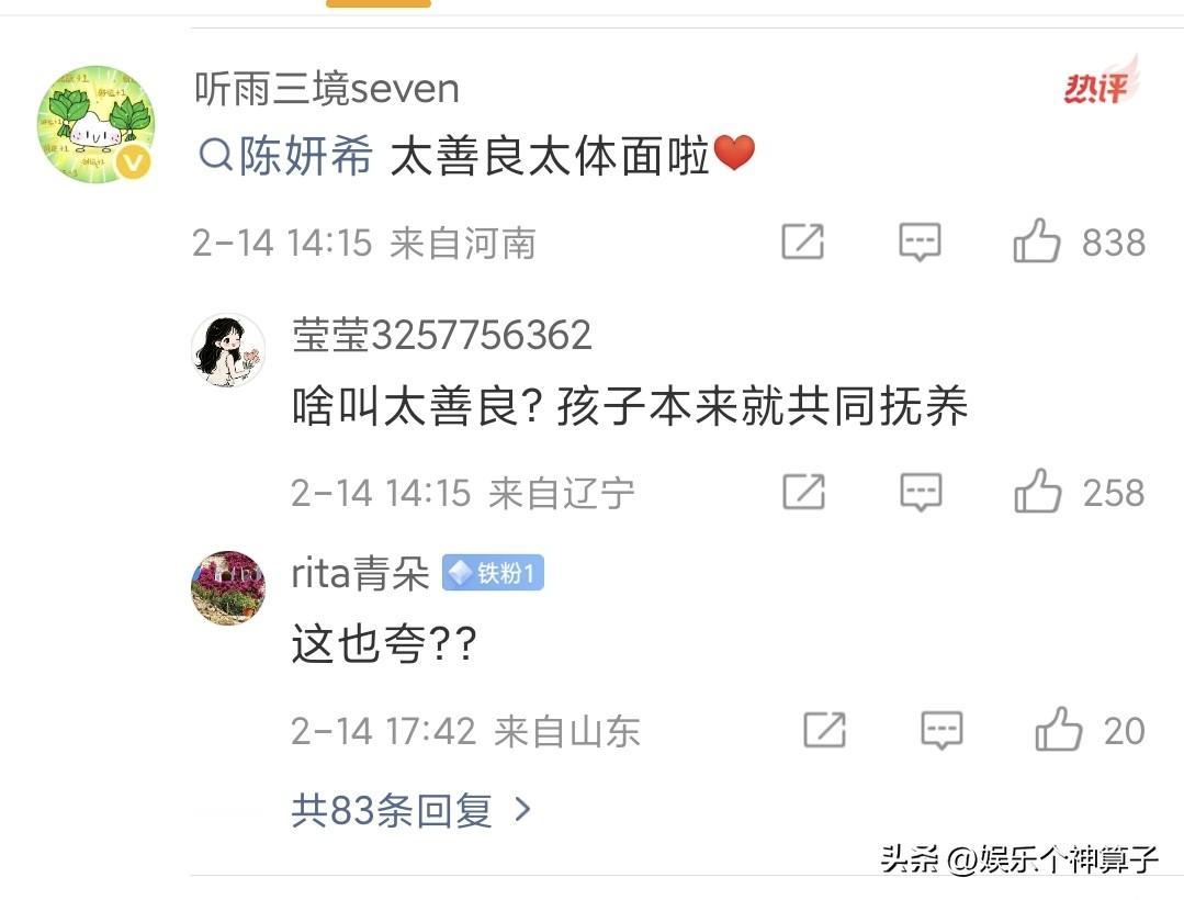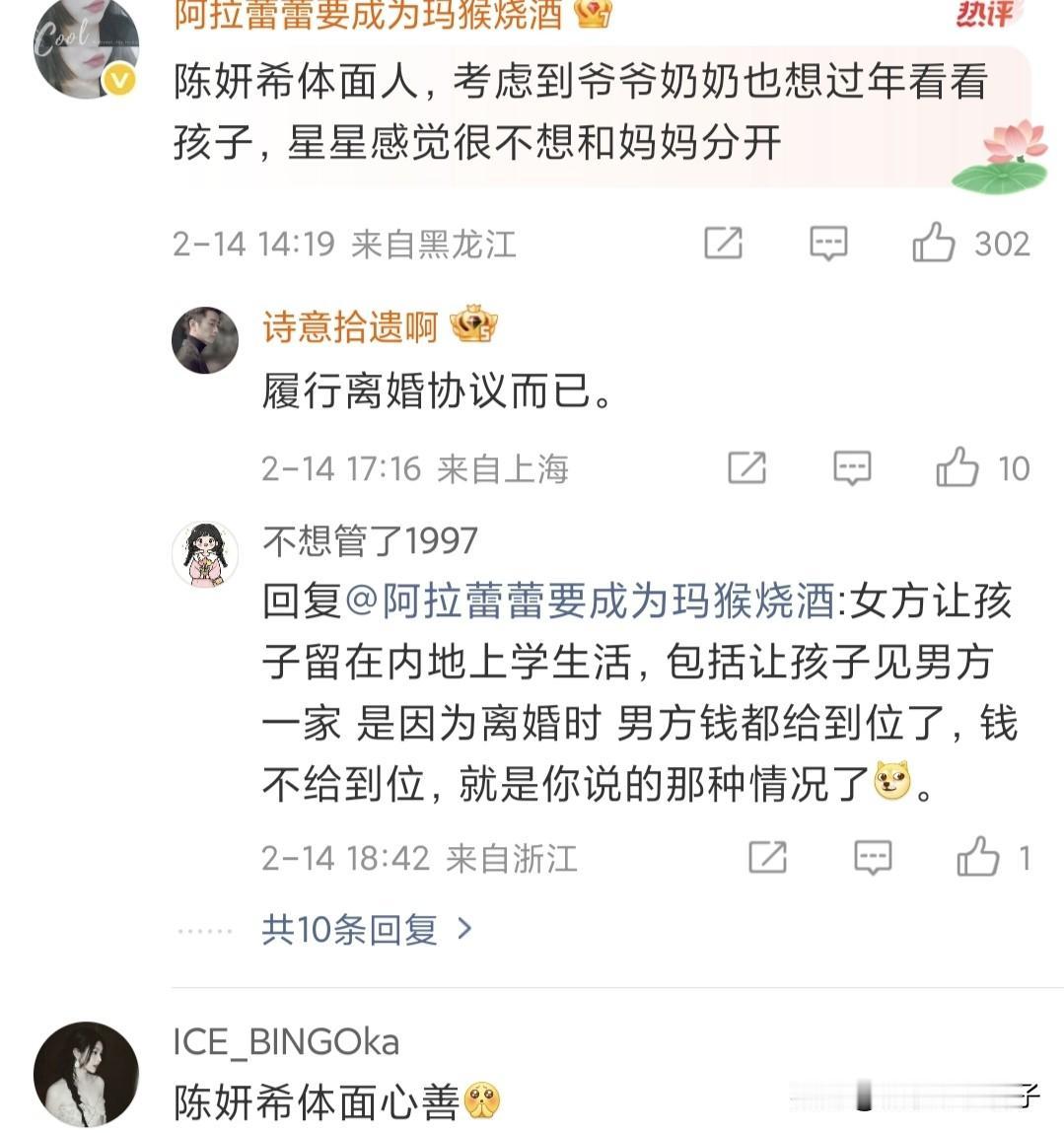 陈妍希,这事做的确实体面! 2月14日,陈妍希上了热搜,这一次,不是与年轻搭档一起出席活动,而是带着儿子现身机场,接下来的做法,获得网友的称赞。 据悉,媒体拍到陈妍希和10岁的儿子(小星星)一起现身机场,到了登机口,却分开行走,陈妍希直接回台北,儿子由工作人员陪同回到陈晓的老家。 画面中,陈妍希身穿黑色长款风衣,不时抚摸儿子的头,看起来难舍难分,小星星特别可爱,这么一看,太像父亲陈晓了。 该说不说,,陈妍希能够让儿子回家与陈晓团聚,这事做的确实挺体面,过年了,爷爷奶奶肯定非常想念孙子,毕竟,平时看不到,对于老人来说,这就是最好的礼物。 同样,对于陈妍希的娘家来说,姥姥和姥爷肯定也想见外孙,所以,只能有个选择,相信陈晓应该特别开心。 也有网友觉得,平时都是陈妍希照顾孩子,过年了,更不应该分开。 其实,仔细想想,小星星无论跟陈妍希,还是陈晓一起过年,都能感受到家的温暖,作为路人,没必要纠结了。 说到这里,有些惋惜,曾经幸福的一家三口,如果不分开,过年会更热闹。