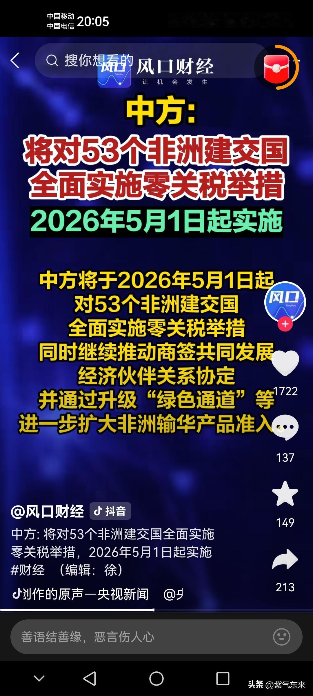 非洲人民无不佩服中国的格局,中国值得信赖! 中国这项关税政策这次可以说直接“打脸”美国的关税壁垒 美国总统特朗普动不动就加征关税,让世界各国苦不堪言,敢怒不敢言! 中国反其道而行之! 中国政府将对53个非洲已建交国家全面实施零关税政策!此项政策将于2026年5月1日起实施! 中国加强与非洲的贸易合作,并且升级“绿色通道”,进一步扩大非洲输华产品准入的品类和种类! 零关税造福贸易双方,双向奔赴! 非洲人民非常感谢中国的这项政策,带动非洲的经济发展,造福非洲人民!非洲豁免关税