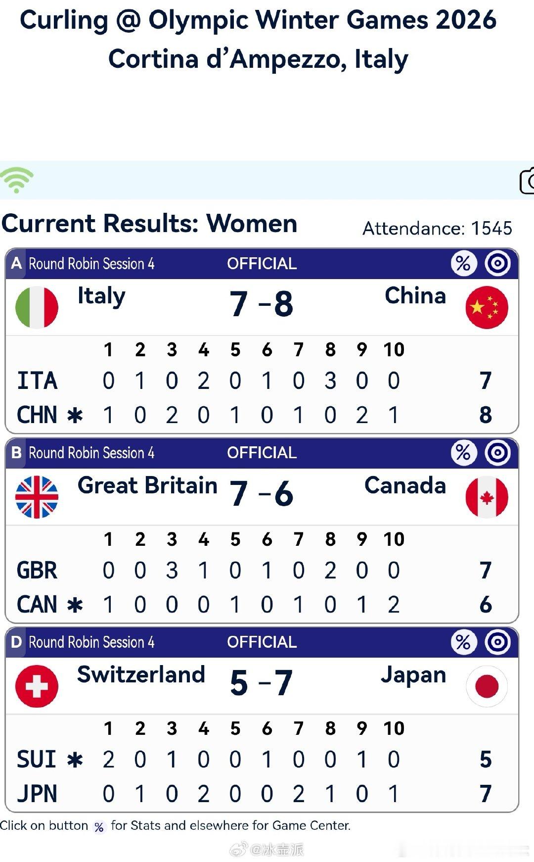 冰壶派 【冬奥会女子冰壶循环赛】2026年米兰科尔蒂纳冬奥会米兰冬奥会冰壶四轮循环赛过后,各赛道详细赛果及目前女子排名如下。中国女子冰壶队以2胜1负的成绩与韩国、瑞士、美国并列排名第二。女队的下一个对手将是美国队,北京时间2月15日21:05,让我们一起为中国队加油! cr:冰壶派