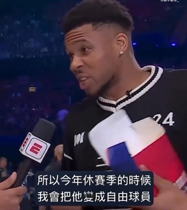 字母哥反向嘲讽Shams: “知道我的球队为什么输球吗?因为Shams在我的队伍里,其他人都会打球,只有他根本不会打球,因此今年夏天,我会把他送上交易市场,让他成为自由球员。” 全明星名人赛,Shams所在球队的主教练就是字母哥,Shams全场4投0中,只拿到3个失误,字母果然开始“反攻”。 从上赛季的休赛期到本赛季中期交易,Shams就一直放出消息称字母哥要求离开雄鹿,且会马上离开,这让字母非常不满,他在媒体上公开发言,炮轰Shams只会制造假新闻。 而直至今天,字母的交易虽然闹的满城风雨,但他依然是雄鹿的一员,这时候全明星赛身份调换,可算让字母逮到机会了。