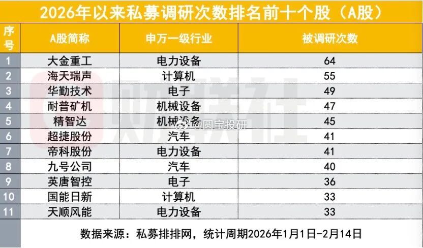 2026年私募调研十大个股出炉