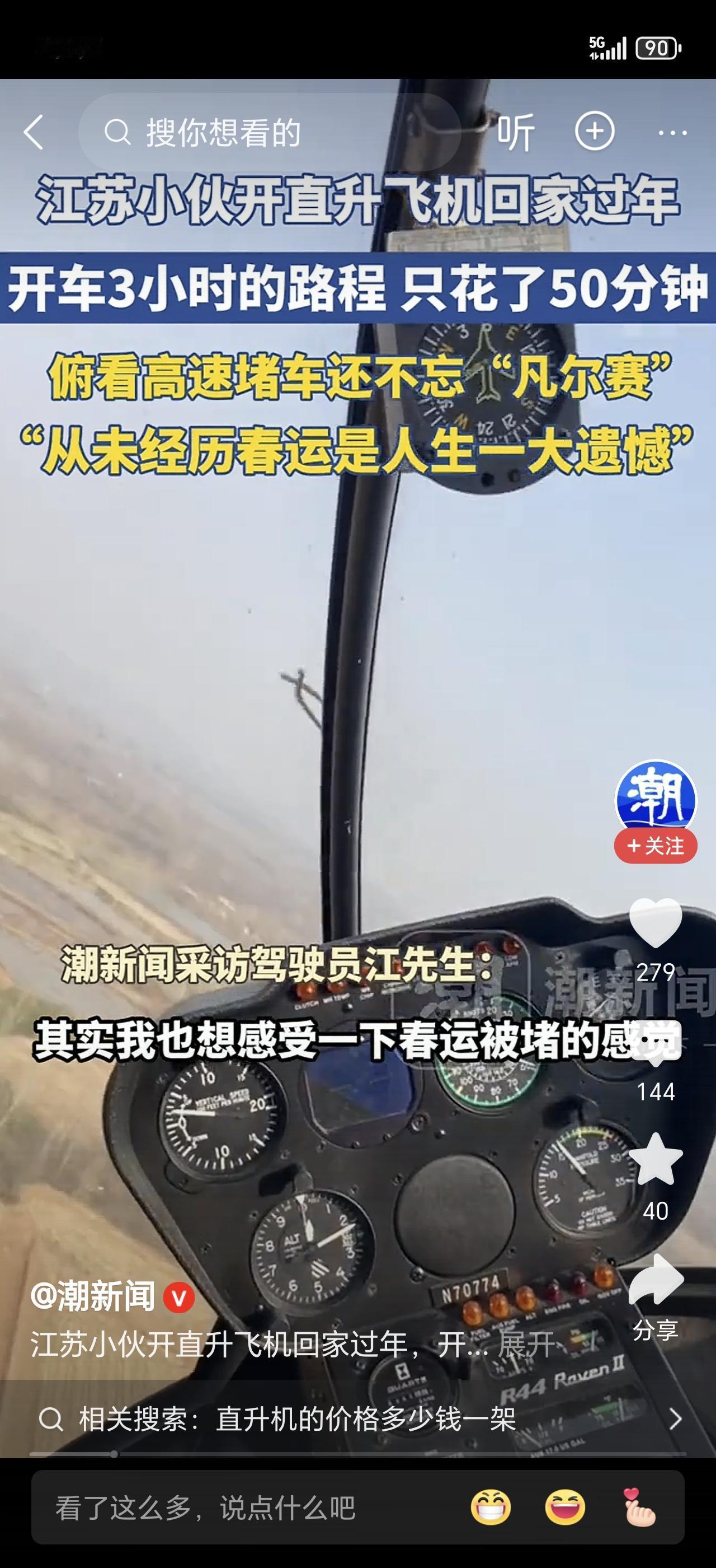 小伙开直升机回家过年,在空中俯瞰高速堵车,网友:这才是真正的“不堵车”模式! 大年二十九,湖南一小伙的操作直接把全网看傻了。别人还在高速上堵得怀疑人生,他倒好——开着直升机,直接从天上飞回家了! 视频里,小伙稳稳操控着直升机,从空中俯瞰下方,高速公路上密密麻麻的车流像蜗牛一样挪动。他淡定地来了句:“下面堵得不行,我先走了啊。”这波凡尔赛,属实扎心了。 原来,小伙是一名飞行爱好者,考了飞行执照,这架直升机也是合法租赁的。他早就摸透了春节高速的尿性,干脆另辟蹊径,直接从天上走。 到了村口,直升机稳稳降落在地面空地上。闻讯赶来的乡亲们围了一圈,小孩们兴奋得直蹦,大爷大妈掏出手机狂拍。小伙从机舱里拎出年货,笑着给乡亲们拜年。 视频传上网,评论区彻底炸了:“这哪是回家过年,这是王者归来!”“建议推广,以后春运直接空中走廊!”“高速堵车:我堵你;直升机:我飞你。” 当然,也有人担心安全问题。对此,专业人士提醒:私人飞行必须提前申报空域,取得合法审批,不是想飞就能飞的。小伙也表示,航线、起降点都提前报备过,合规操作。 有网友算了笔账:租直升机一小时几千块,但省下的时间和好心情,值了。更有人调侃:“堵车费油,堵机费钱,但堵机可比堵车爽多了。” 如果条件允许,你会选择开飞机回家过年吗?你觉得这种“空中春运”未来能普及吗?评论区聊聊你的看法!春节返乡大堵车 返乡人高速堵车 高速过年 开直升机接亲