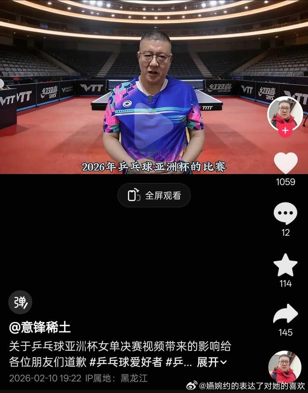 只是在发自己练习乒乓球的乒乓球爱好者,发表了一些对乒乓球的看法,还是王曼玉老乡,就这样被🕸️到发道歉视频