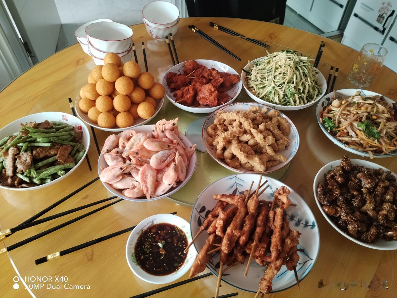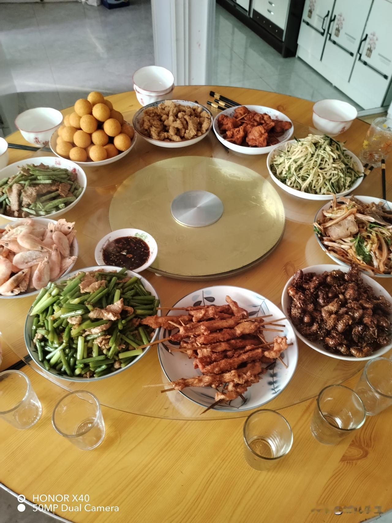 今天我们全家聚会了,去二小姑家,忙活了一下午,总算把菜端上了桌。还炸了知了猴,刚做出来特别好吃。 还有冰虾,用小毛虾炒鸡蛋,味道很鲜美。一锅炖了排骨和溜达鸡,还放了葫芦条,是真的好吃。 做了四喜丸子,纯肉馅的,主打真材实料。这顿饭很丰盛!