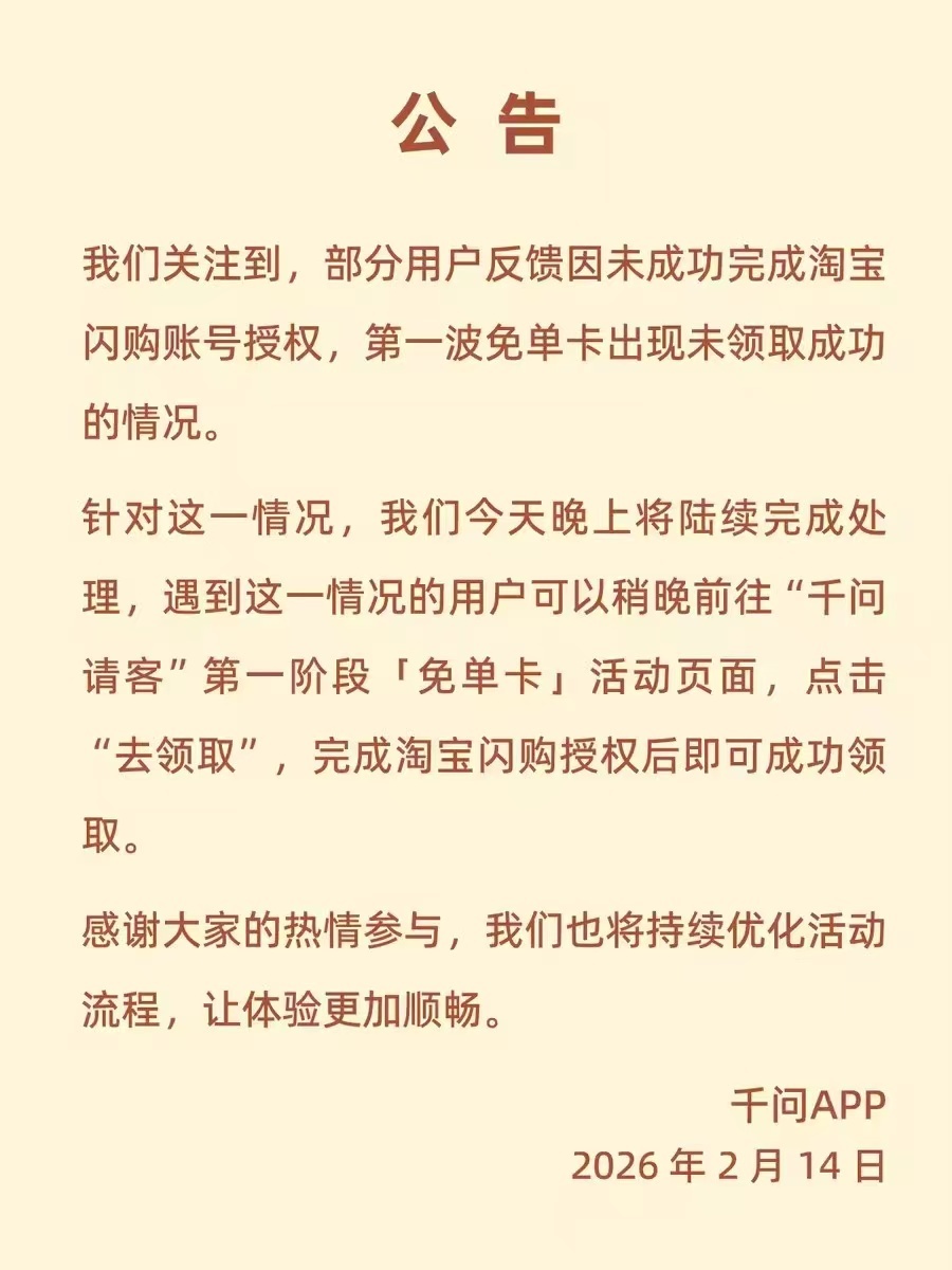 千问补发免单卡 刷到有人吐槽说免单卡没领到,本来以为这事儿就过去了,结果官方当天就回应说补上,还顺手把活动延期了三天。这种反应速度,怎么说呢,像那种你刚想抱怨、对方已经把奶茶递到你手里的朋友。现在连电影票门票都能买了,估计接下来几天,大家不是在薅羊毛,就是在研究怎么让AI帮自己买票。挺好,有点热闹才像过节嘛。