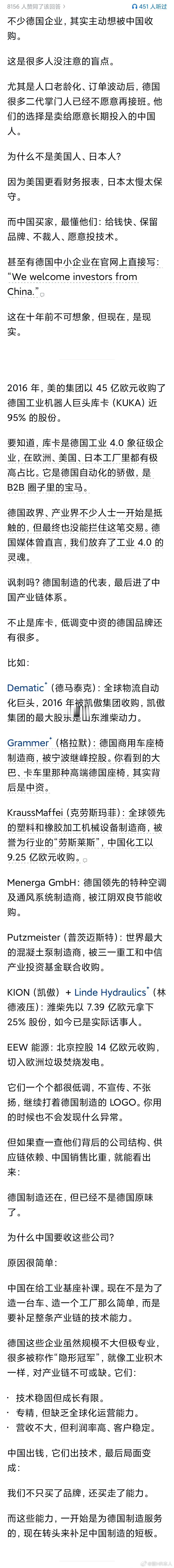 德国的工业已经退到什么地步了?博世十一条生产线,2条德国,8条中国,1条美国。如果美国人不是搞贸易保护主义,连一条都守不住了。