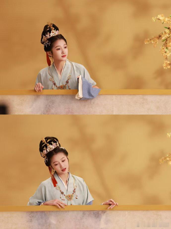 关晓彤青绿国风扮相 瞧瞧关晓彤这青绿国风造型!河南春晚蓝金纱裙仙气飘飘,精致细节搭配温柔神态,美得让人陶醉!