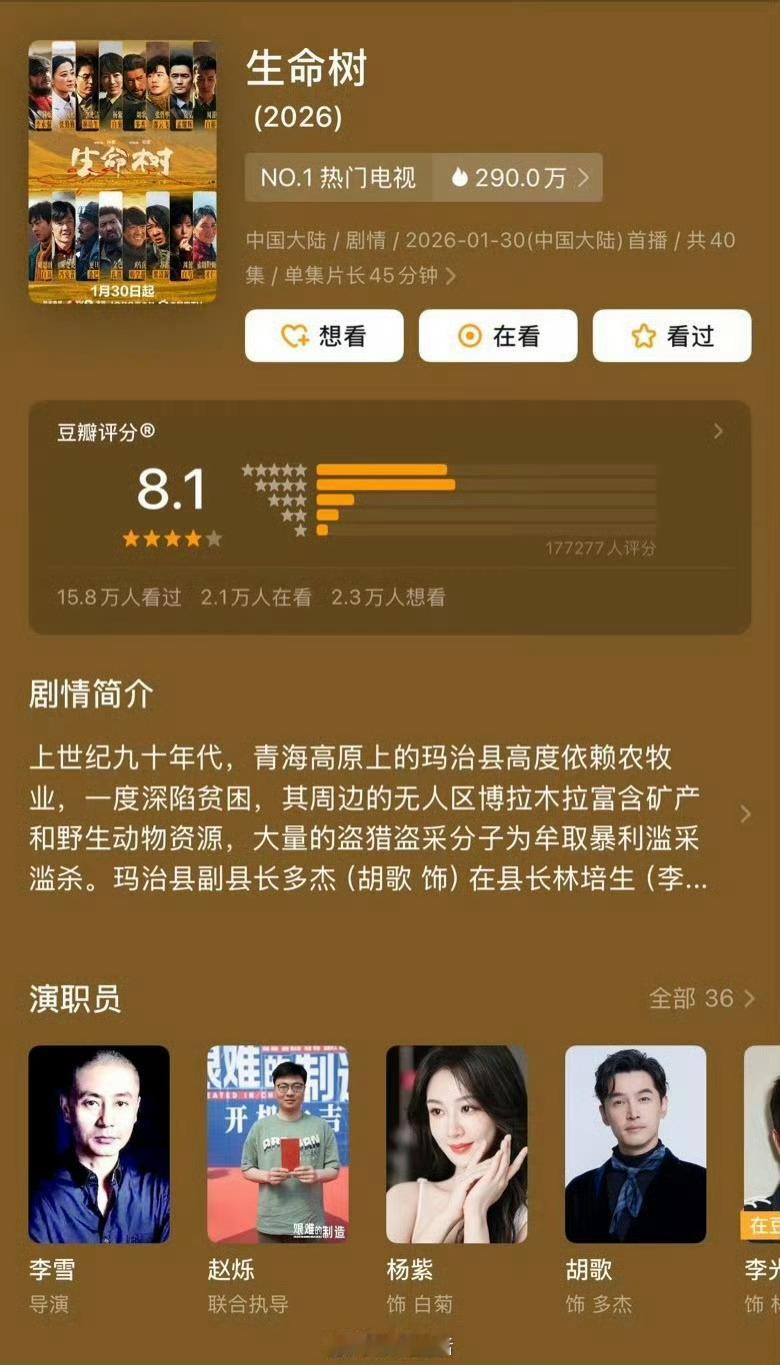 杨紫胡歌《生命树》豆瓣开分8.1,近18w人打分后在豆瓣受到了疯狂的审判,没想到有那么多人那么恨…生命树被排字
