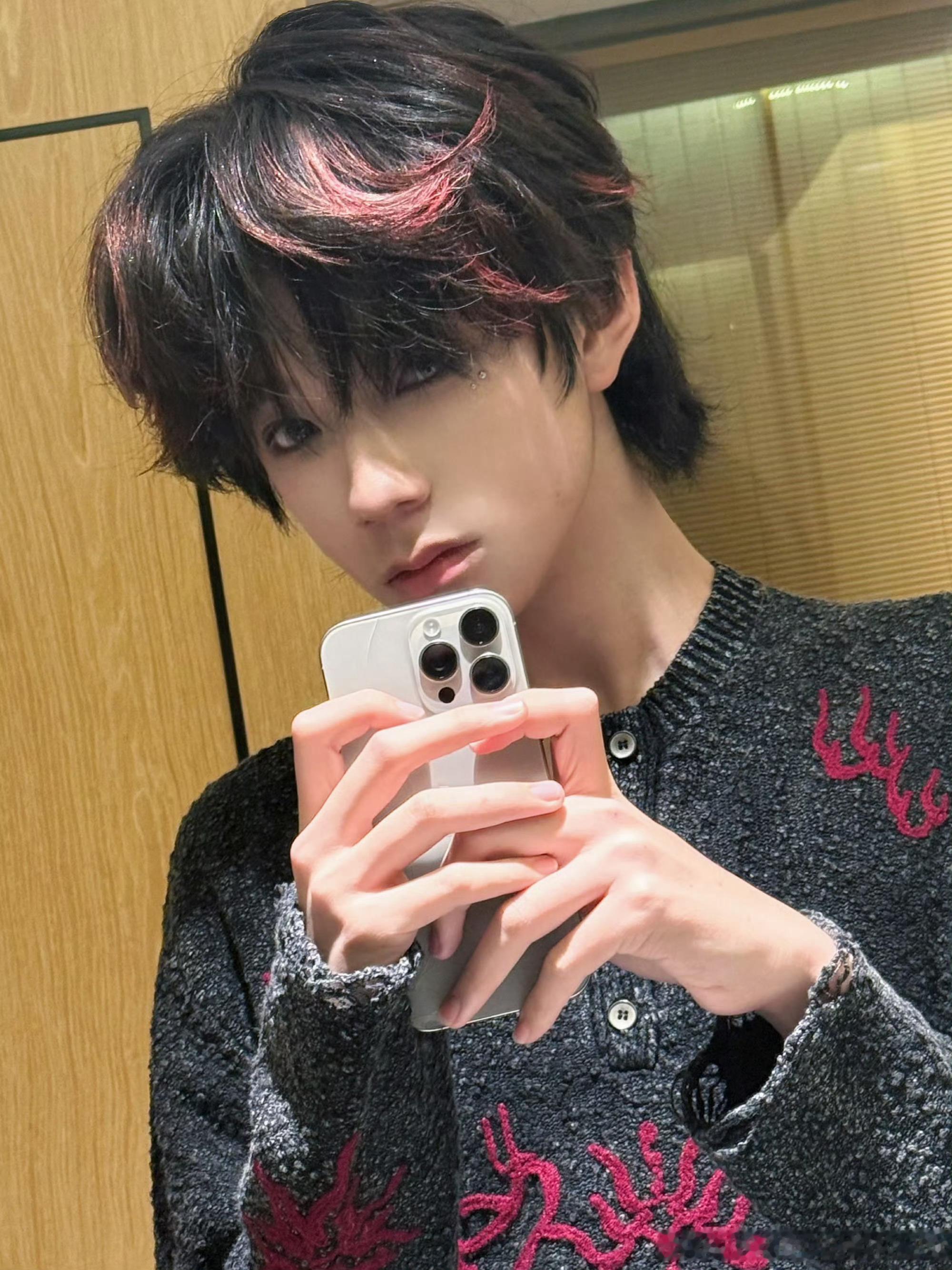 王橹杰红色挑染造型王橹杰情人节晒照营业王橹杰情人节晒照营业,红色挑染造型真的好亮