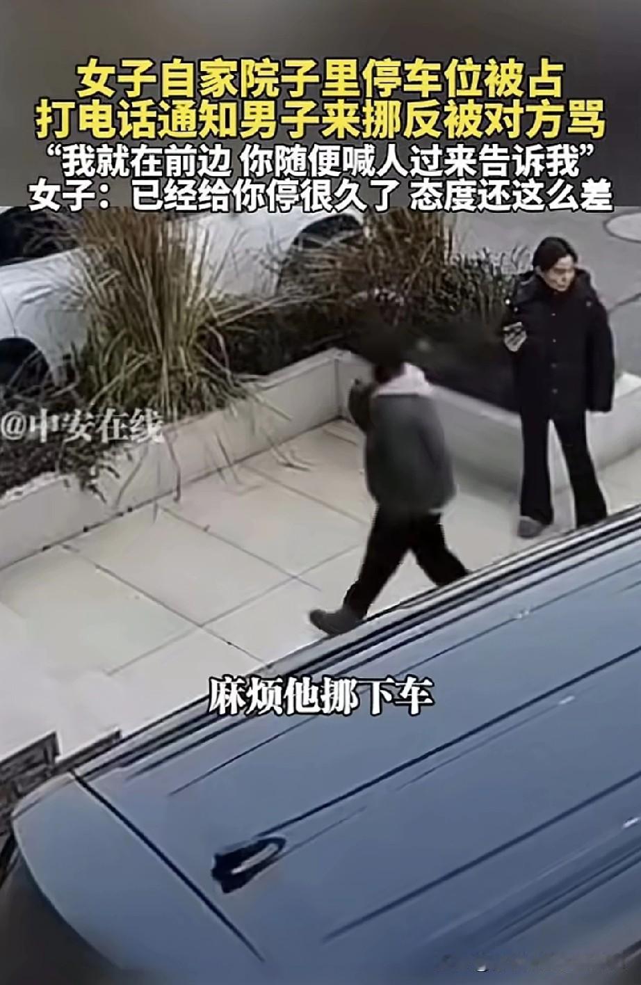 女子回家看见自己家院子内,停了一辆车,便打电话,通知车主说我老公也快下班了麻烦你过来挪一下车,接电话那边是个女子说话也很客气,同意挪车,我家车没有地方停,车主派一个男子过来骂骂咧咧的,说我就在前边,你随便喊一个人过来告诉我一声就行,我把车挪开就是了,怎么态度这样呢?女子不乐意,你把车停到我家院子车位,我叫你挪车,你还说我态度不好这去哪里说理去啊?女子和车主吵起来了,车主还威胁要打女子,男子牛气哄哄的把车开走了。 挺奇葩的,停别人家院子里还有理,谁给你的勇气谁给你的底气,占车位的前提是公共车位,这是别人的院子里的车位,私人的。这种情况就是道德问题,如果下次还敢停就在车周围钉栏杆,反正这是美女的院子未经院子主人同意或缺乏合法依据擅自进入,通常违法。院子属于住宅一部分,受法律保护,他人无正当理由不得随意侵入。应该直接报警。对此,大家怎么看?