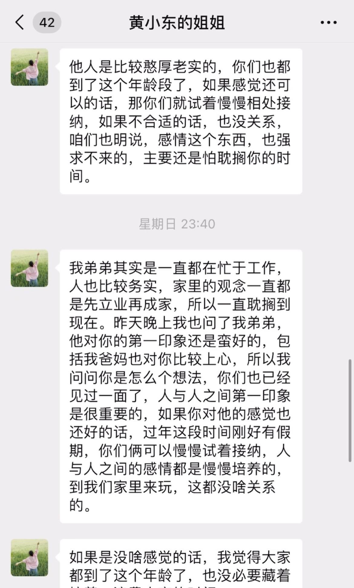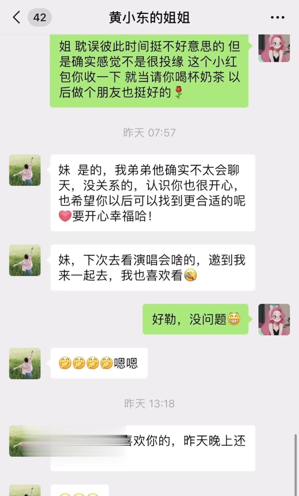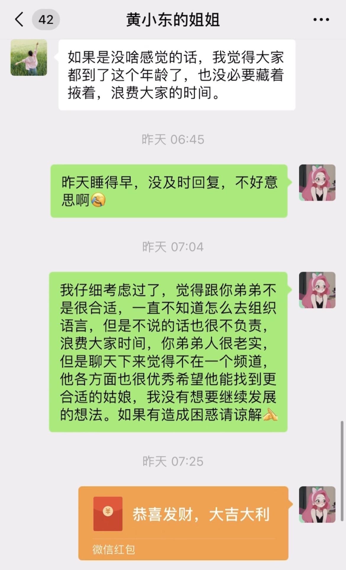 95年的相亲对象本来想约我爬山不知道怎么开口,就让他姐姐发信息约我,仔细考虑后便礼貌回绝了,并把见面吃东西的钱A过去了