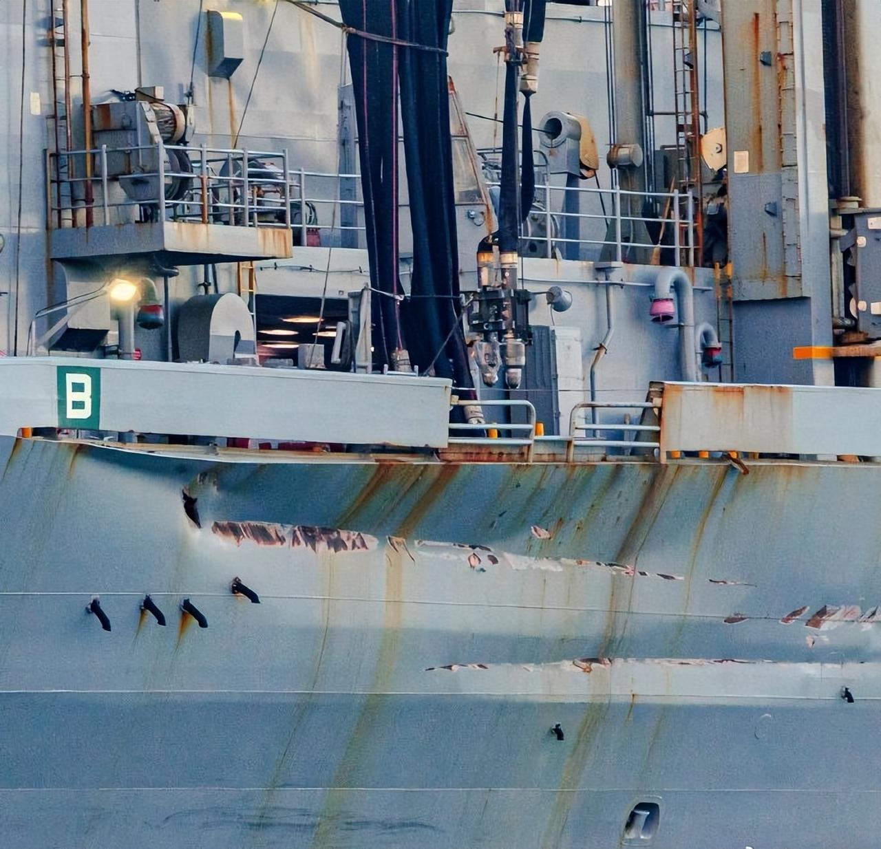 美军这个船修一下不得几个亿美金?4S店做一个钣金修复能行吗? 这是美军补给舰在