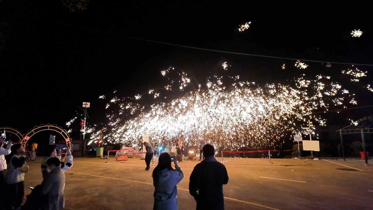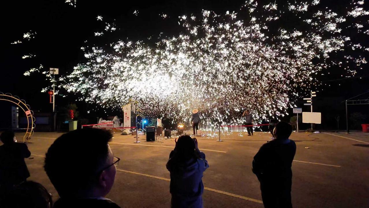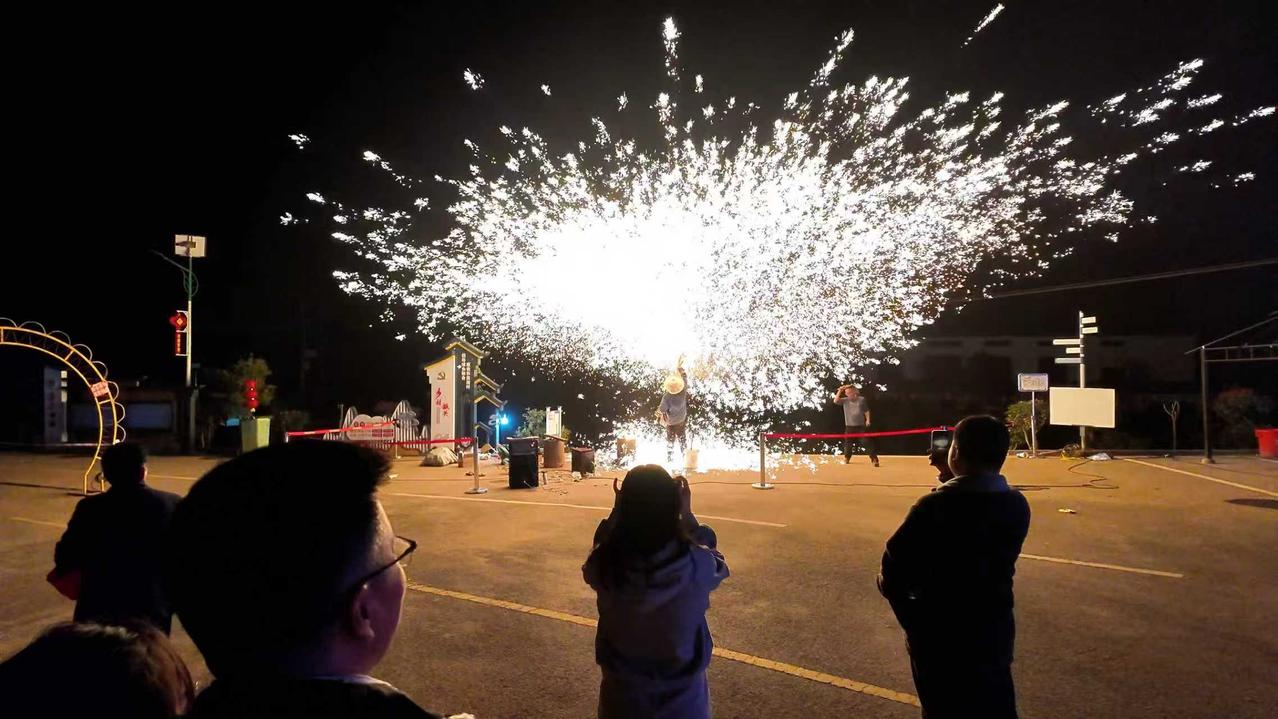在安仁神龙谷第一次看打铁花,原来这是1000多度的铁水甩到空中,形成的壮观景象。看打铁花要站得远一点,以防铁花溅在身上,把衣服烧掉了。 安仁神龙谷,一个很偏的地方,离市区大概有10km远,但是利用灯光秀打电话这样的节目,吸引了成千上万的人一起过来参观。30块钱一张的门票,一个晚上收入最少都有好几万。 所以说,乡村振兴我觉得不是什么难事,就关键看当地的人有没有很好的创意。