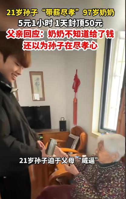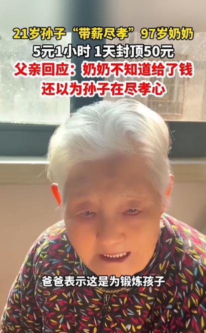 “笑不活了!”近日,浙江宁波,一大学生放寒假后,父亲看他在家没事干,就让男生去照顾奶奶,为了安抚男生,还按打工的待遇,一天封顶50,但男生奶奶并不知道,还以为是儿子把孙子送来让自己照顾!网友:双方都觉得对方很好带! 浙江宁波一名21岁的大学生,放寒假后就回了家,每天在家没事可做,闲着晃悠。 他的父亲看在眼里,就想着让他做点有意义的事,正好家里97岁的奶奶需要人陪伴照料,于是就跟男生商量,让他去照顾奶奶。 父亲怕男生不愿意,觉得照顾老人麻烦,就想着用打工的待遇安抚他,和男生约定,照顾奶奶一天,就给一天的工钱,一小时5块,一天封顶50块,男生听了之后,就答应了下来,正式“上岗”照顾奶奶。 不过有个小细节,男生的奶奶并不知道这份“打工”约定,一直以为是自己的儿子,也就是男生的爸爸,特意把孙子送来陪自己、让自己照顾的,压根不知道孙子照顾自己还能拿到工钱。 平时男生陪奶奶聊天、扶着奶奶走动,帮奶奶照料基础的起居,相处得特别和睦。 后来男生的父亲问起两人相处的感受,祖孙俩的回答特别默契,异口同声地说对方很好带。 男生觉得奶奶特别省心,作息规律,不吵不闹,也不挑食,自己不用费什么劲,就陪在身边说说话、搭把手,一天的时间就过去了,这份“活儿”做起来特别轻松。 而奶奶这边,更是对这个大孙子特别满意,觉得孙子特别懂事,在奶奶看来,放假后的孙子没有像别的年轻人那样,整天出去乱跑、沉迷手机,而是安安静静地守在自己身边,陪着自己解闷,不惹事、不添乱,比小时候带男生的爸爸还要省心,所以一直夸孙子好带。 这件事被分享到网上后,网友们都被这对祖孙逗乐了,纷纷留言调侃,说这就是双向奔赴的相处,双方都觉得对方很好带,特别可爱。 其实大家也都明白,父亲给的50块钱封顶的工钱,说白了就是个形式,目的就是想让男生多陪陪奶奶,体会照顾长辈的责任,同时也让高龄的奶奶能有人贴心陪伴。 男生在照顾奶奶的过程中,体会到了陪伴的意义,奶奶也在孙子的陪伴中,感受到了安心和温暖,这份藏在烟火气里的隔代亲,也打动了很多人。 以上都是个人观点,对此您有什么不同的看法,可以在评论区留言讨论!!!