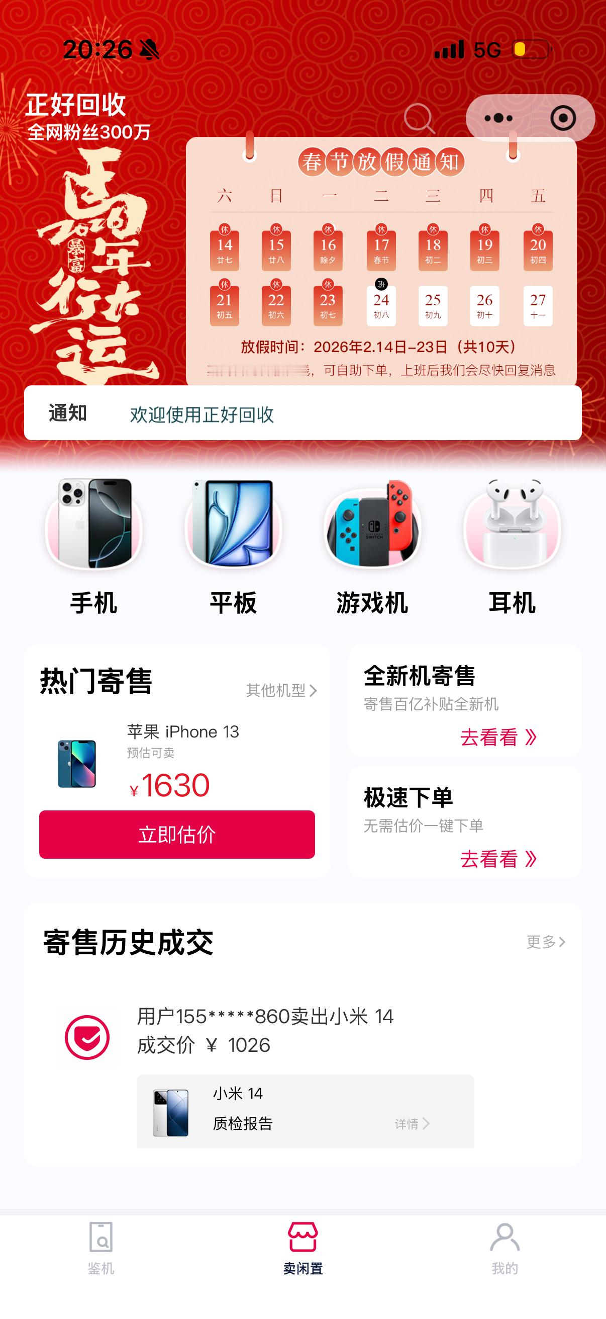 正好回收 放假啦有需要回收的老铁可以自助下单,春节放假期间无客服回复消息,请见谅初八开工后第一时间安排验机打款,提前预告下,除夕夜给大伙儿安排红包🧧🧧🧧,记得来看我