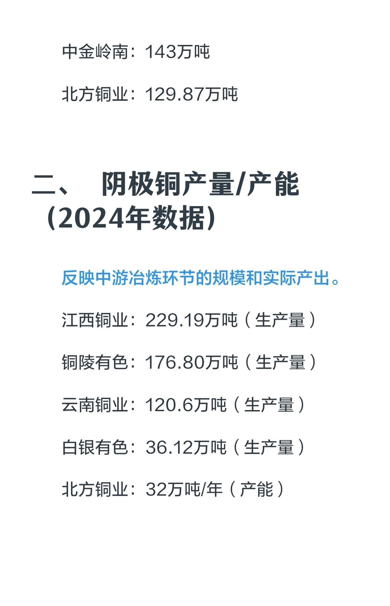 A股铜产业链龙头企业梳理(全链条:资源—冶炼—加工)。 1. 铜矿资源量(上游核心家底): - 紫金矿业 1.1亿吨(全球第二) - 洛阳钼业 3444万吨 - 江西铜业 1312万吨(权益) - 其他:铜陵有色、西部矿业、云南铜业、河钢资源、中金黄金等。 2. 阴极铜产量/产能(中游冶炼规模,2024年数据): - 江西铜业 229.19万吨 - 铜陵有色 176.80万吨 - 云南铜业 120.6万吨 - 中金岭南 143万吨,北方铜业 129.87万吨等。 3. 铜产品营收(下游加工业务规模,2024年财报): - 江西铜业 1288亿元(铜杆线+加工) - 金田股份 1117亿元 - 海亮股份 617.95亿元 - 楚江新材、博威合金、众源新材、嘉元科技、诺德股份等均有细分领域优势。 4. 其他铜相关业务营收(补充): - 鑫科材料、有研粉材、电工合金分别在铜基合金、金属粉体、铜母线领域有对应营收。 结论:资料系统盘点了A股铜产业链从资源储量、冶炼产能到加工营收的龙头企业,便于快速掌握行业格局。