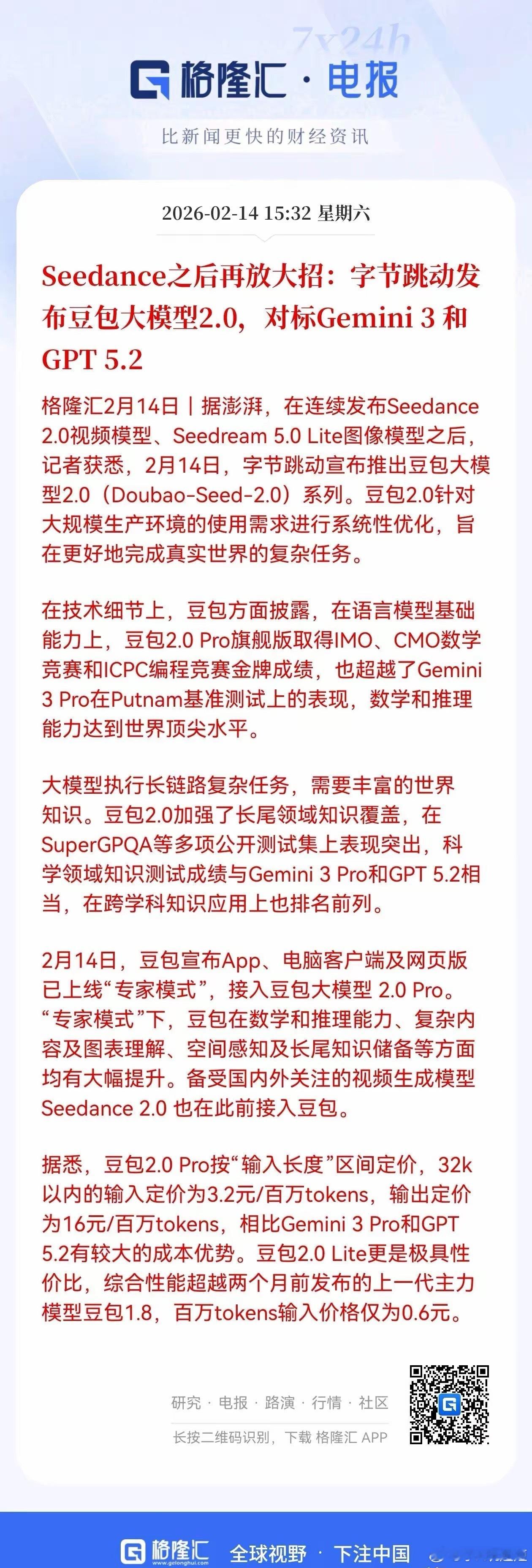 刚刚豆包、阿里云通义都发布了消息,AI大模型会迎来井喷吗?刚刚字节跳动发布了豆包2.0,阿里云通义宣布推出CoPaw,千问宣布大免单再加3天。AI大模型的消息一个接一个,人工智能的春天要来了吗?你们觉得26年节后上来,AI大模型概念股会不会爆发呢?AI千问豆包阿里千问AI大模型今日A股