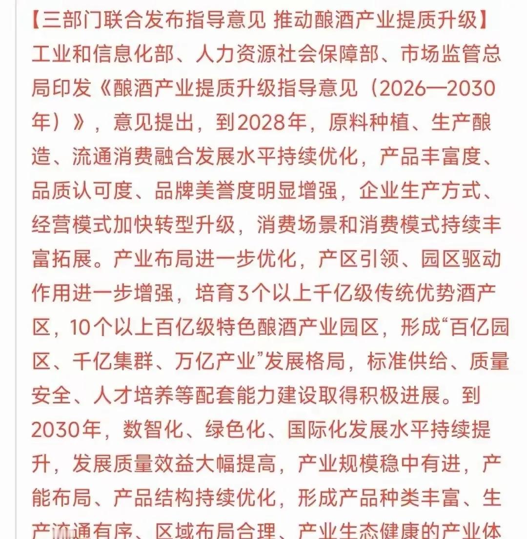 假期白酒大消息,怪不得前段时间,白酒大涨,原来不是去避险,这是有人有消息,提前炒作。这不刚刚放假,白酒的利好消息,就来了。上面出政策性利好,支持白酒行业稳定发展。并且培育3万以上的,千亿级园区。不用想茅台一个、五粮液一个,汾酒一个,老窖一个。其余的暂时,不可能形成规模。