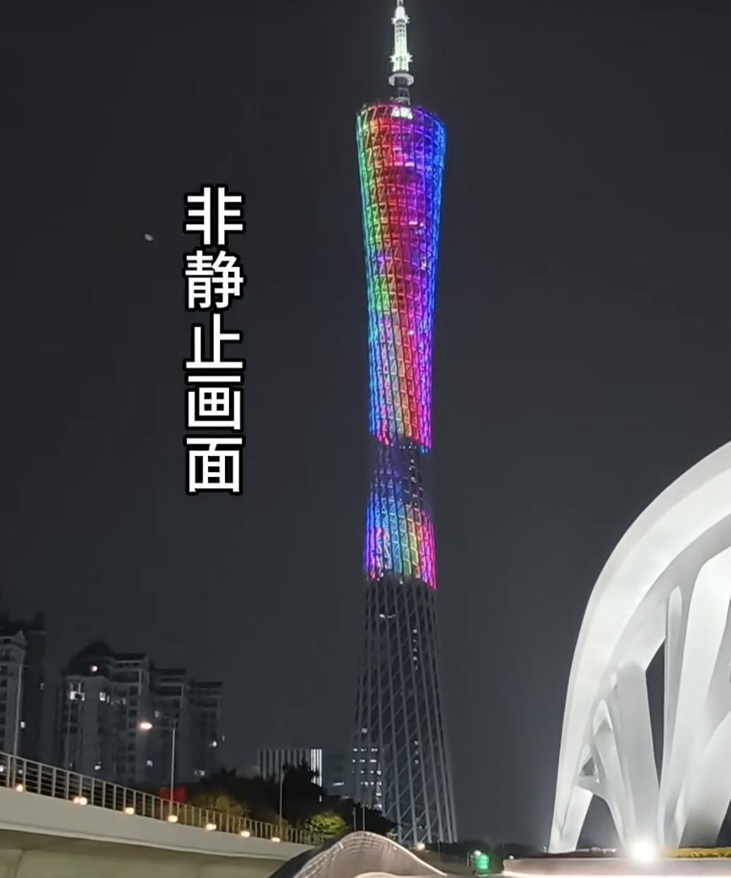 广州塔每天晚上11准时关灯,不是整天都是亮着灯的! 关灯是分几节,先是从塔底开