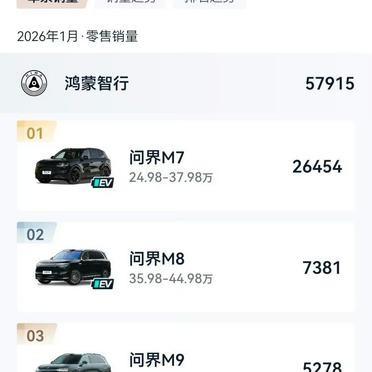 鸿蒙智行1月卖了57915台车。问界M7一台就占了26000台。 这台车的顶配落地价接近40万。问界M8卖40多万,一个月7300多台。问界M9卖50多万,上市有段时间了,临近改款,照样一个月5200多台。百万级别的尊界,淡季也卖了2700多台。 这些数字加起来,比同价位的奔驰宝马奥迪卖得都多。 一台50多万的车,二手市场价格很硬。新车照样有人排队买。他们买的不是最新款的芯片,也不是马上要迭代的硬件。 买的是那套车机系统启动时流畅的动画。 是智能驾驶在高速上自动变道超车时的从容。 是手机上的日程自动同步到车机导航。 是家里空调在你快到家时提前打开。 你总在比较参数表上的马力、零百加速、屏幕尺寸。你焦虑下一款是不是有更长的续航、更快的充电。你为每一个“新”功能支付溢价,却很少为一个已经跑通、让你彻底省心的完整方案买单。 当人们愿意为一套系统付钱时,买的不是纸面上的承诺。 是他们承诺的那种生活,终于有人把它做成了每天上下班路上触手可及的现实。